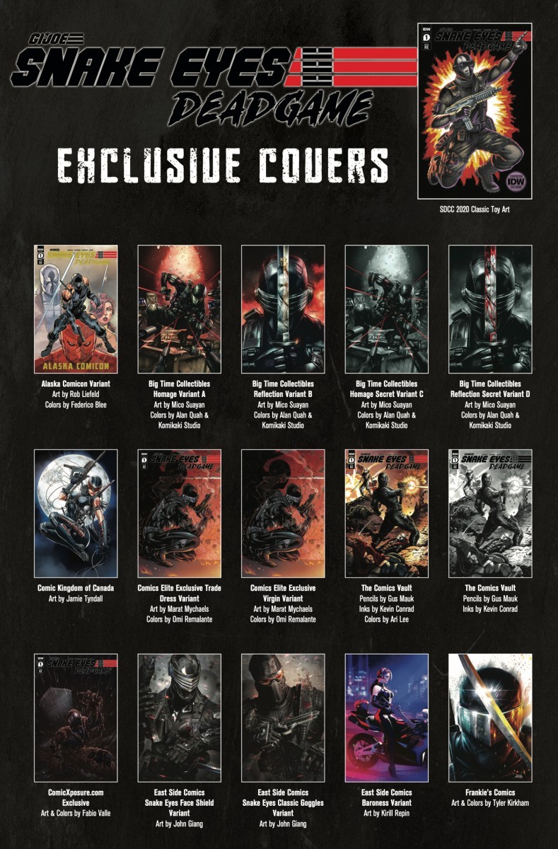“G.I. Joe is a storied franchise that has entertained fans across multiple generations! It was my first toy, and my passion for these characters and this world has run deep since I was a young boy consumed with all things ‘Joe’,” states Liefeld. “The opportunity to write and draw Snake Eyes, and adding all-new characters, challenges, and consequences to the pantheon of G.I. Joe has been the highlight of my career to date! I’m thrilled to release Snake Eyes: Deadgame into the world courtesy of Hasbro and IDW! The support from fans has been incredible!”
