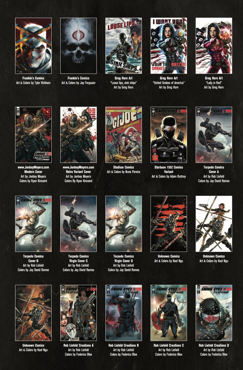 With its release fast approaching, IDW Publishing has announced that creator Rob Liefeld’s upcoming G.I. Joe miniseries Snake Eyes: Deadgame is set to launch with 36 variant covers, including nine from Liefeld himself. Here’s a peak at said covers…