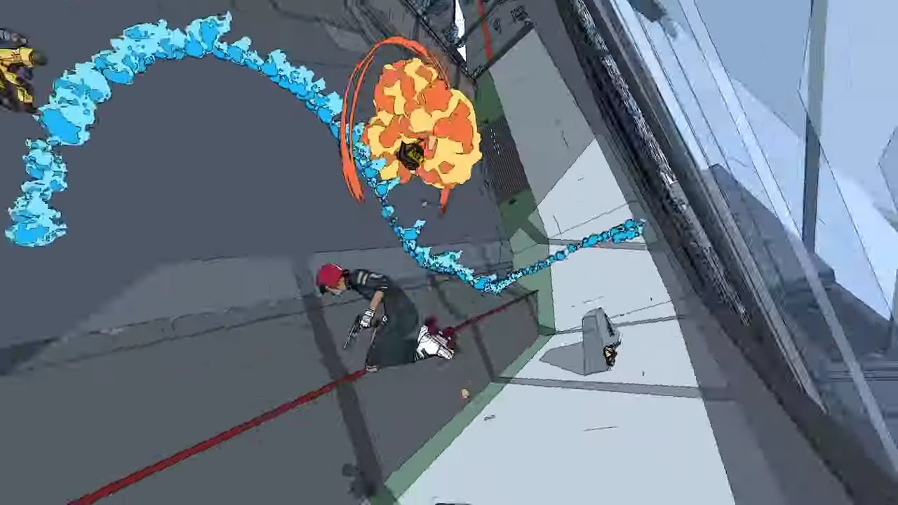 This third-person shooter is presented in a comic-book inspired, retro-futuristic art style that pays homage to the extreme action sports games of old. It also reinforces the intense combat by using a strong, bold colour palette and character outlines that will draw gamers’ attention.