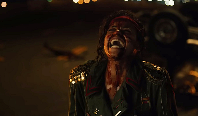 Strangely, this part of Los Angeles treats Ethan as an untouchable figure. The police don’t believe Cherie and throw her in jail (which could be intentional to protect her and other potential victims, except most likely not because the film never explores why anyone acts so weird and gullible during conversations about him). By tracking the scent of Cherie’s period blood, Ethan tracks her down and bails her out, proposing a game: if she can survive the night, he will stop hunting her.