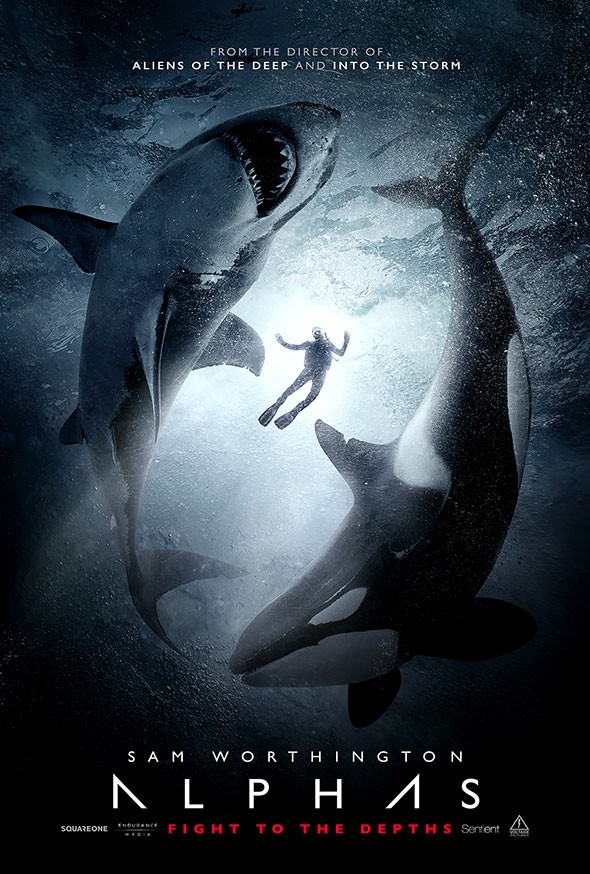 Avatar star Sam Worthington is set to lead the cast of Voltage Pictures’ Alphas, a thriller from director Steven Quale (Into the Storm) and screenwriter Frank Hannah (The Cooler) which pits a fearsome Great White Shark against a deadly Killer Whale in a battle of the aquatic apex predators. Check out the teaser poster here direct from the European Film Market…