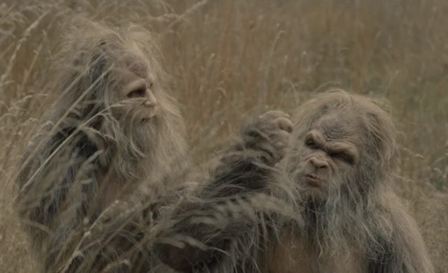 Given that there is also some astonishingly detailed costume and makeup design that make these creatures feel like they exist, the emotional element is more effective. It’s a small ensemble of four, but with two recognizable names, Jesse Eisenberg and Riley Keough, unafraid to appear unrecognizable in the film; you might have to squint or use a bit of extra focus to adjust yourself to see who is playing which sasquatch, and while that might sound initially confusing for some, it doesn’t turn out to be an issue and is, if anything, might be the highest compliment there is to pay the below-the-line team. The sasquatches look nothing like their acting counterparts, save for slightly noticeable facial structure features and eyes, but evoke a strong sense of humanity among their toilet humor shenanigans.