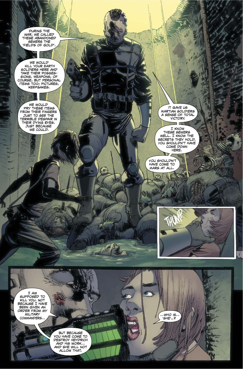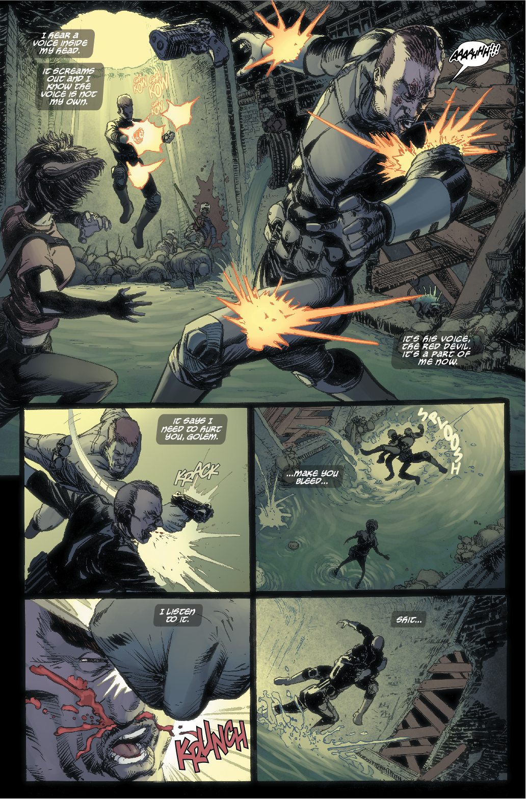 Check out an exclusive preview of a four page action seqence from the third chapter of the book, which features the three main characters from the future storyline : Deke Renner, Dr Marion Ross and Golem…