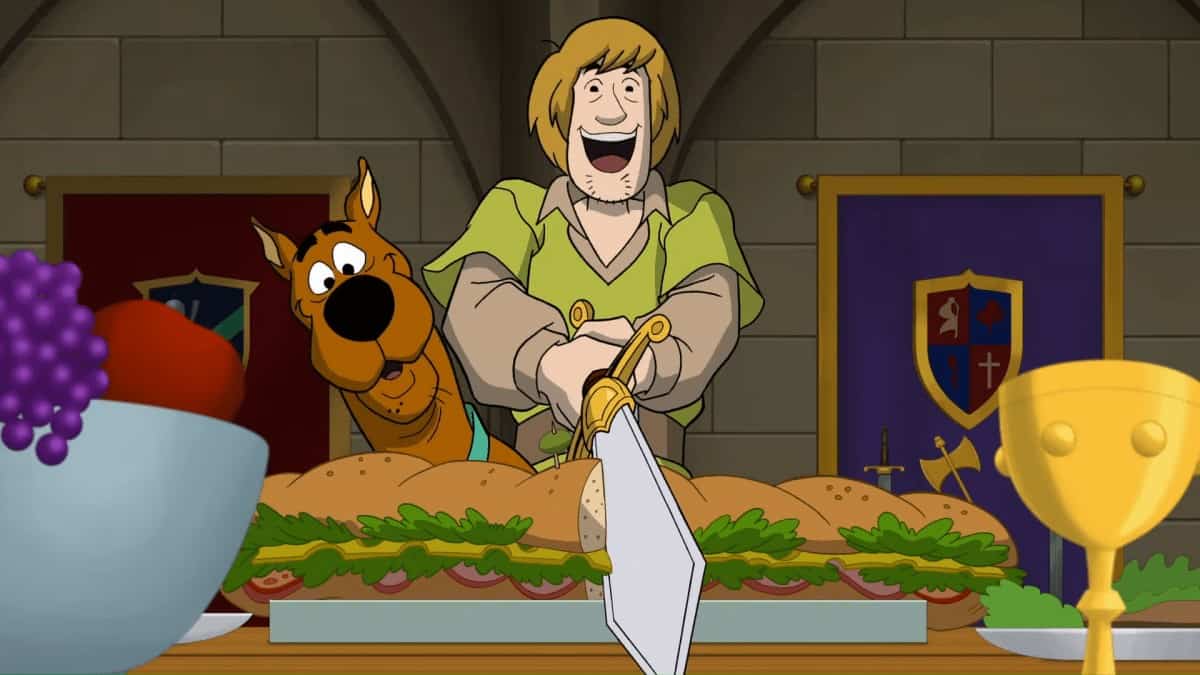 The Scooby-Doo gang is transported to the mythical castled city of Camelot in Scooby-Doo The Sword and the Scoob a brand-new, full-length animated family film set for release on DVD and Digital February 23, 2021 by Warner Bros. Home Entertainment.