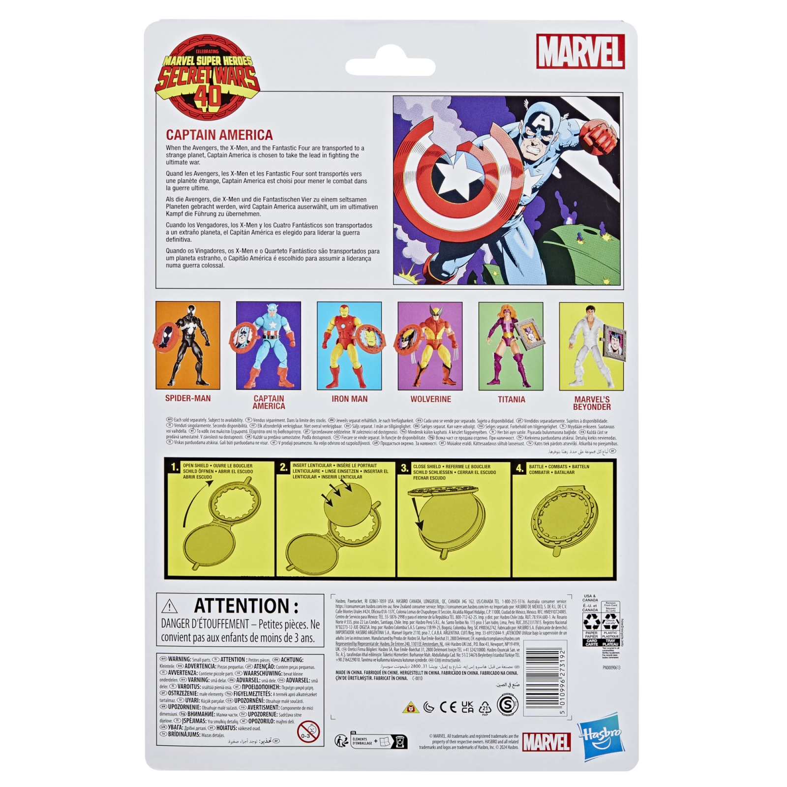 When the Avengers, the X-Men, and the Fantastic Four are transported to a strange planet, Captain America is chosen to take the lead in fighting the ultimate war. Inspired by Captain America’s appearance in the epic 1980s Secret Wars storyline, this 6-inch action figure features multiple points of articulation and poseable head, arms, and legs. Comes with Captain America shield fragments, as well as a set of alternate hands and an alternate head — plus a “secret” shield based on the original figure releases. Features collectible cardback packaging with retro-inspired design and comic character art celebrating the 40th anniversary of Secret Wars.