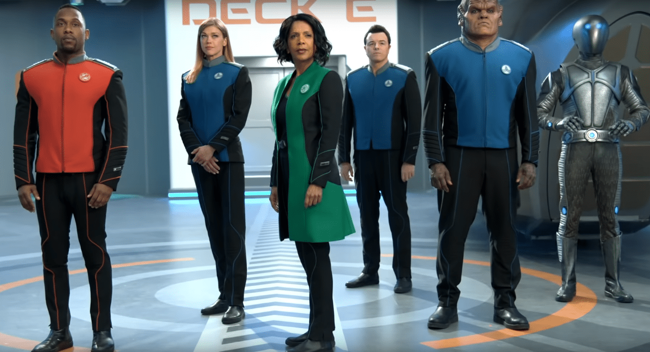As the new commander, Ed assembles a qualified, but eccentric crew, including his best friend, GORDON MALLOY (Scott Grimes, “ER,” “Justified”), who has problems with authority, but is the best helmsman in the fleet; DR. CLAIRE FINN (Penny Johnson Jerald, “24,” “The Larry Sanders Show”), one of the Union’s most accomplished physicians; BORTUS (Peter Macon, “Shameless,” “Bosch”), an alien from a single-sex species; ISAAC (Mark Jackson, “That Royal Today”), an artificial life-form from a machine society that thinks biological life-forms are inferior; navigator JOHN LAMARR (J. Lee, FAMILY GUY, “The Cleveland Show”), whose casual humor cuts through even the most dire situations; ALARA KITAN (Halston Sage, “Neighbors,” “Goosebumps”), a young, inexperienced security officer whose home planet’s high gravity gives her superior physical strength; and YAPHIT, a gelatinous creature voiced by comedian Norm Macdonald (“The Middle,” “Saturday Night Live”).