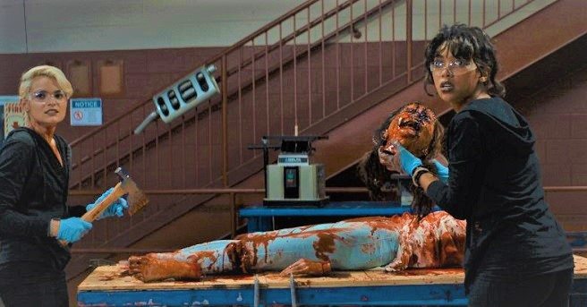 There is plenty of gross-out gore and violence, not to mention all those blisters, sores and abnormal growth meant to make your stomach churn and feel disgusted by the sight of them, thanks to the highly contagious flesh-eating virus in its storyline. We get everything from a janitor pissing blood into a punch bowl to a fellatio in the bathroom stall and even a bloody pus out of a penis. The subsequent prom scene is where the infection spreads all over the students, resulting in more body count. The sequel even throws in the Prom Night’s theme song playing in the background at one point in the movie.