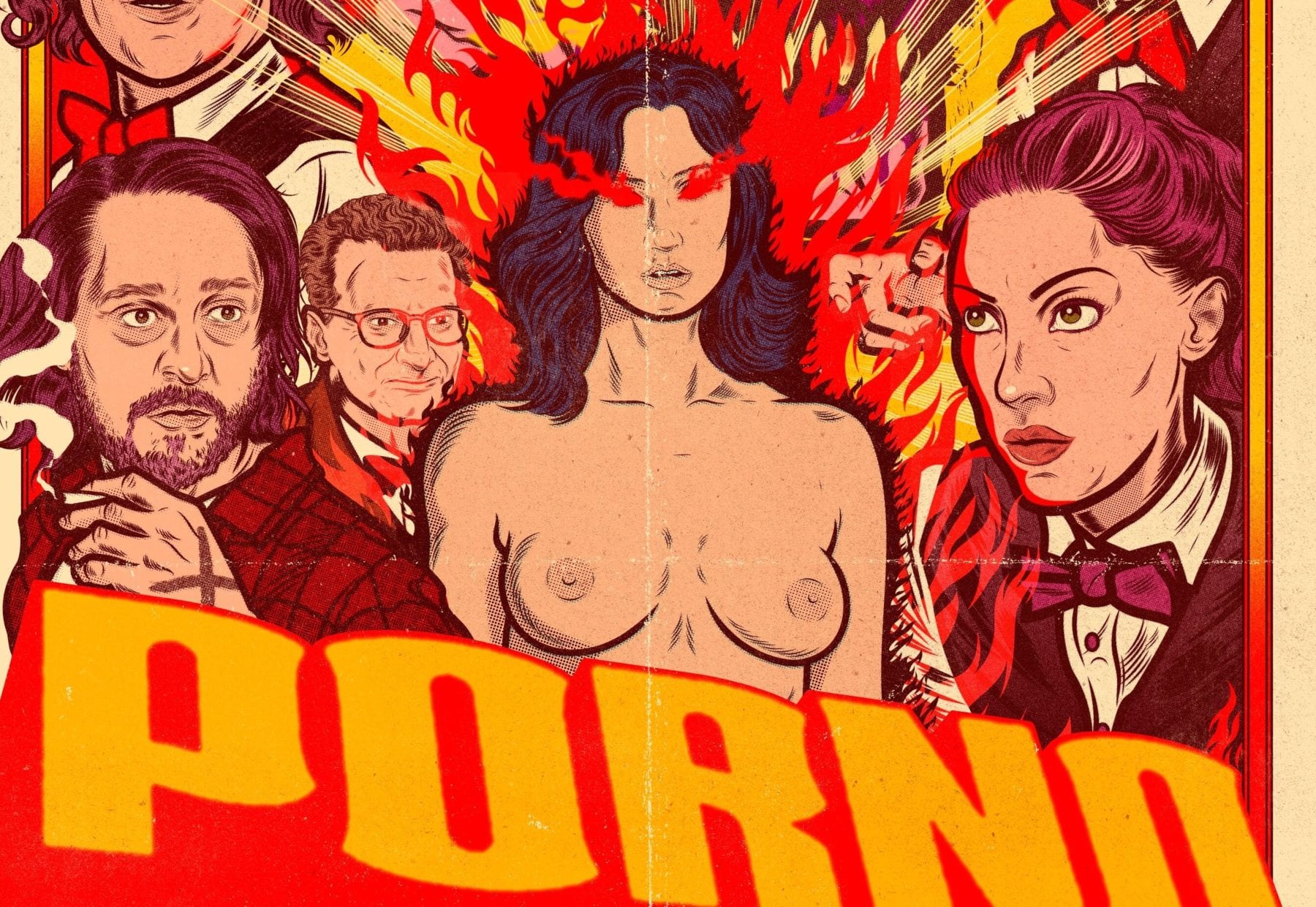 Porno features a cast that includes Evan Daves, Larry Saperstein, Jillian Mueller, Glenn Stott, Robbie Tann, Bill Phillips, Katelyn Pearce, and Peter Reznikoff.