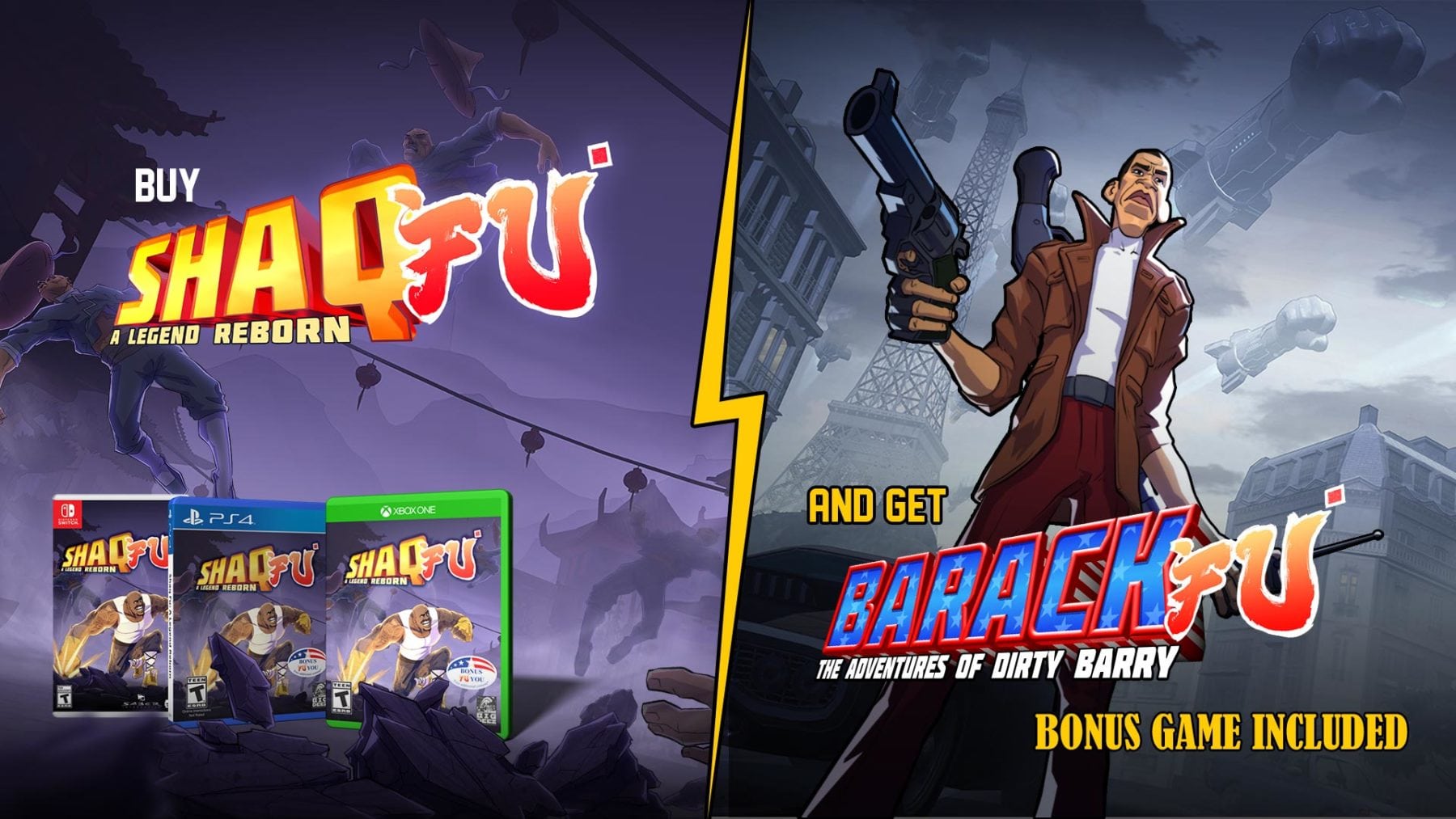 Big Deez Productions have revealed that Barack Fu: The Adventures of Dirty Barry will be available as a special treat for all those who bought the physical copy of Shaq-Fu: A Legend Reborn. This bonus game will be available as a timed exclusive for physical copy owners on consoles and PC. A couple of trailers below introduce Dirty Barry and an announcement from the previous president of America…
