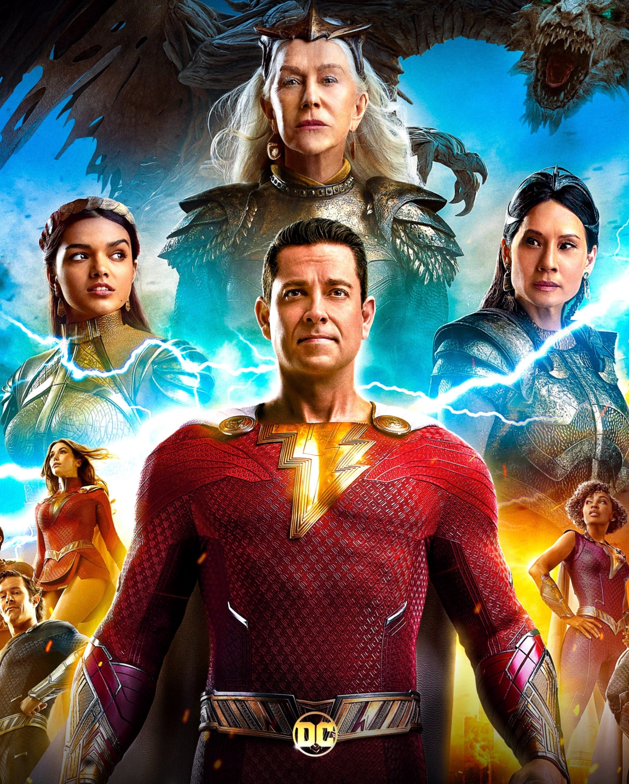 Shazam: Fury of the Gods is directed by David F. Sandberg and sees the return of Zachary Levi alongside fellow cast members Asher Angel as Billy Batson, Jack Dylan Grazer and Adam Brody as Freddy Freeman, Faith Herman and Meagan Good as Darla Dudley, Grace Fulton as Mary Bromfield, Ian Chen and Ross Butler as Eugene Choi, Jovan Armand and D.J. Cotrona as Pedro Pena, Marta Milans as Rosa Vasquez, Cooper Andrews as Victor Vasquez, and Djimon Hounsou as The Wizard. New additions to the cast include Helen Mirren as Hespera, Lucy Liu as Kalypso, and Rachel Zegler as Anthea.