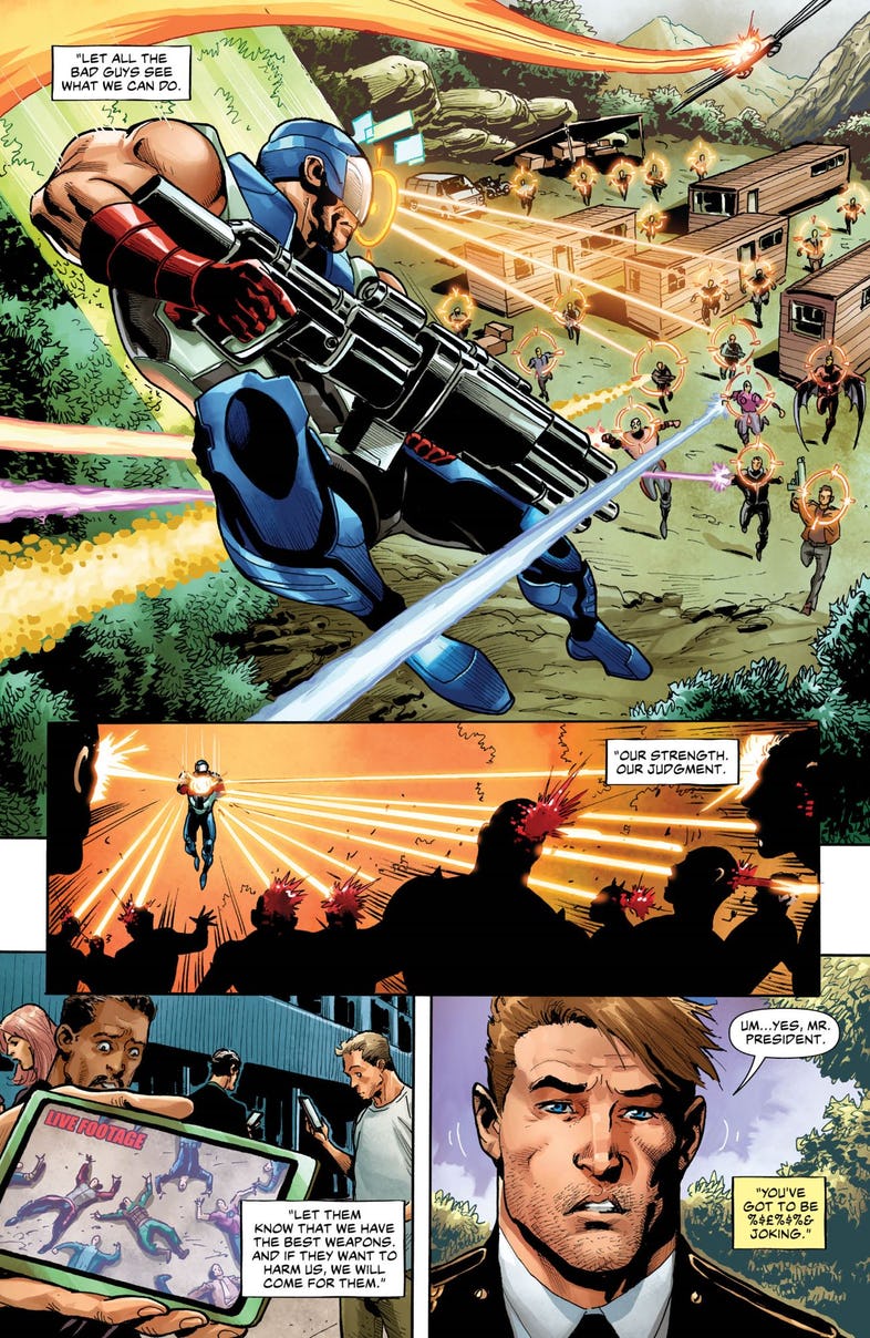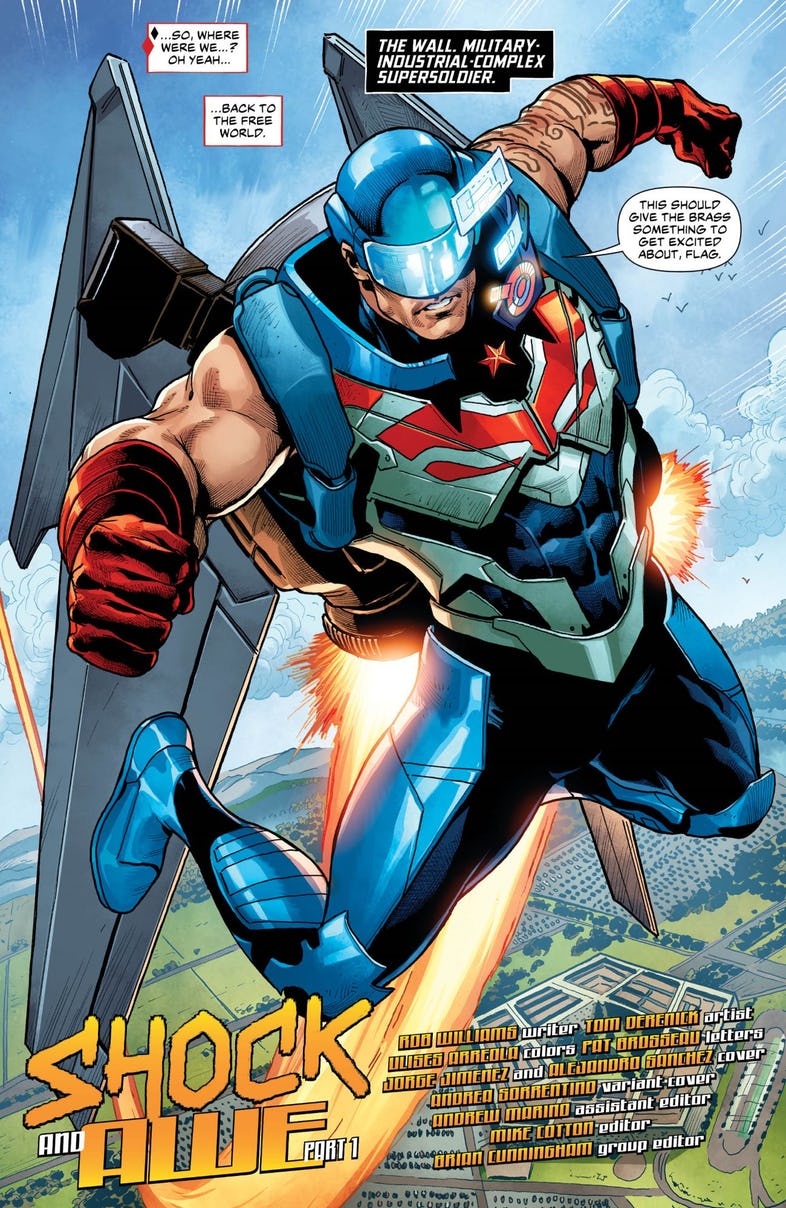 “TEAR DOWN THE WALL” part one! With the success of the new government-sanctioned program, the Wall, the Squad is facing potential decommissioning from the Wall himself! The team faces down the one-man platoon as their lives hang in the balance.