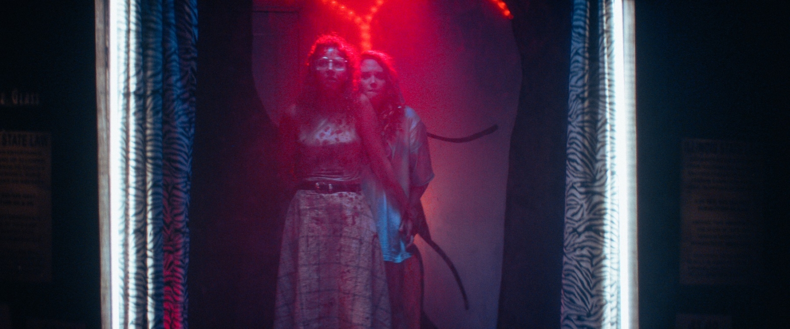 Shudder has released a trailer, poster and images for director Luke Boyce’s upcoming horror Revealer which follows a stripper and a religious protestor (Caito Aase and Shaina Schrooten) who are forced to work together to survive the apocalypse after becoming trapped in a peep show booth in 1980s Chicago. Check them out here…