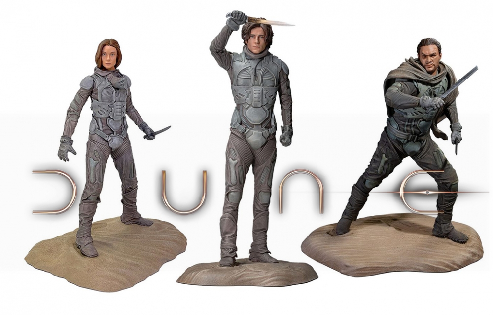 Sideshow and Dark Horse Comics have unveiled their upcoming Paul Atreides, Lady Jessica and Duncan Idaho figures which are based on the likenesses of Timothee Chalamet, Rebecca Ferguson and Jason Momoa’s characters in Denis Villeneuve’s hotly-anticipated Frank Herbert adaptation Dune. The collectibles are available to pre-order now, priced at $49.99 each; take a look here…