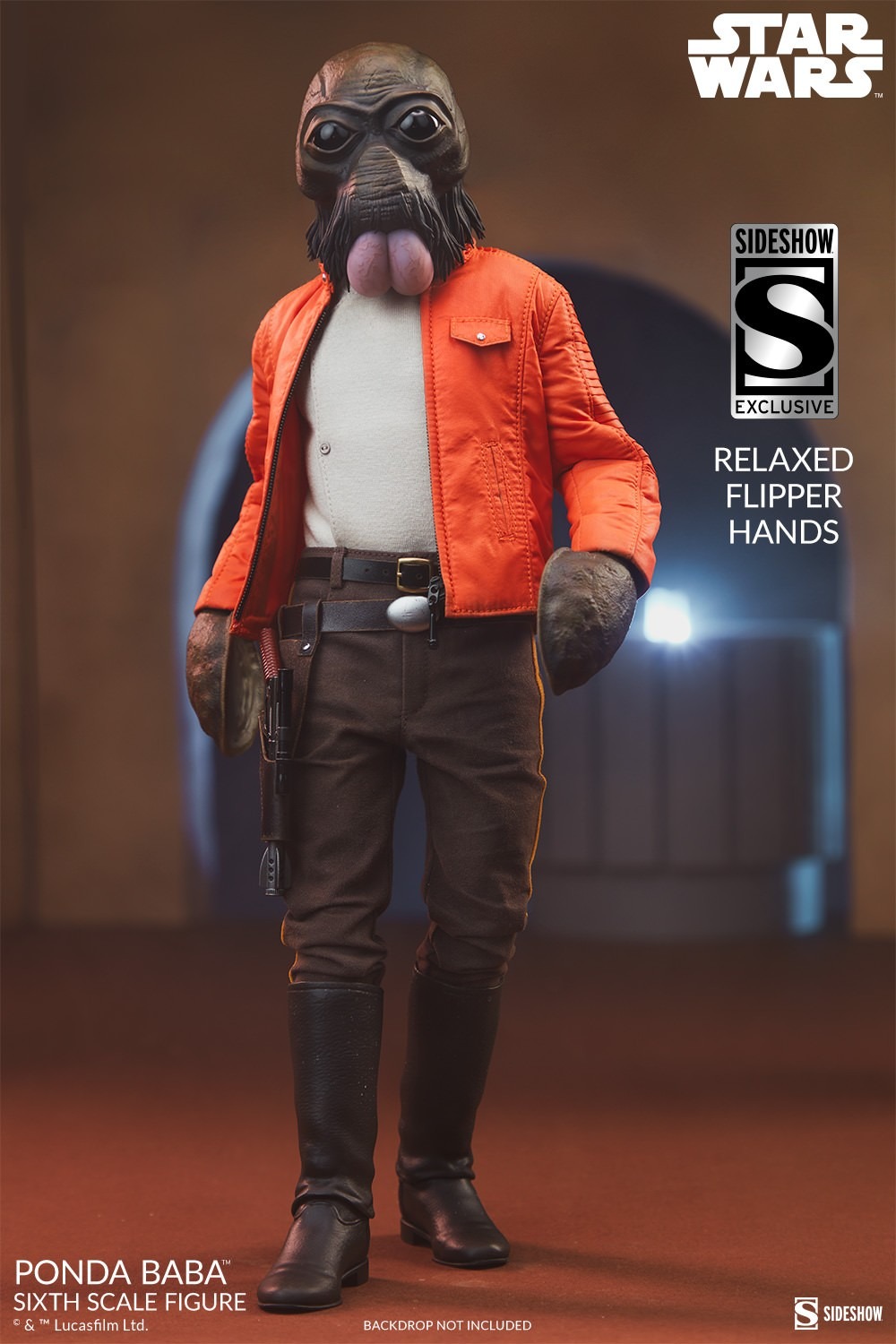 Fans can further customize their display with two relaxed flipper hands, a flipper hand for wielding Ponda Baba’s modified blaster, and an alternate holster. These additional Aqualish accessories are only available as part of the Exclusive Edition of this limited figure release.