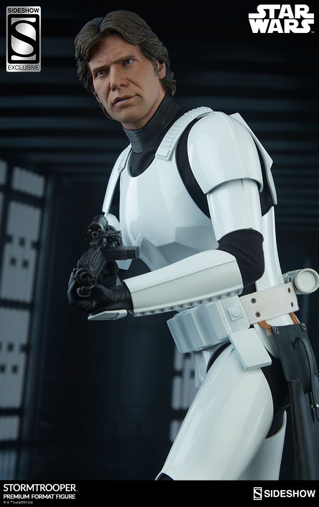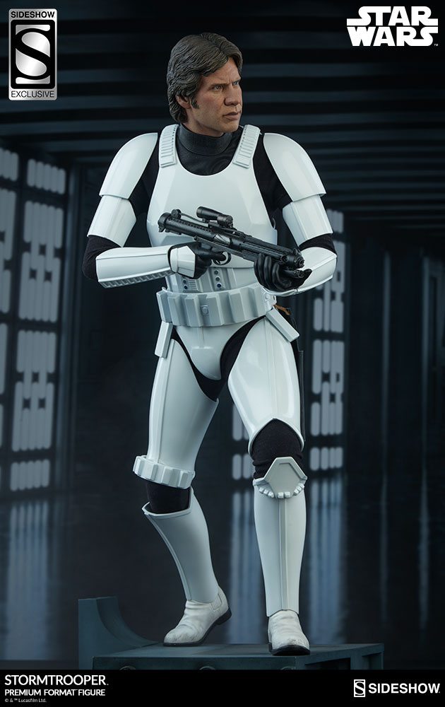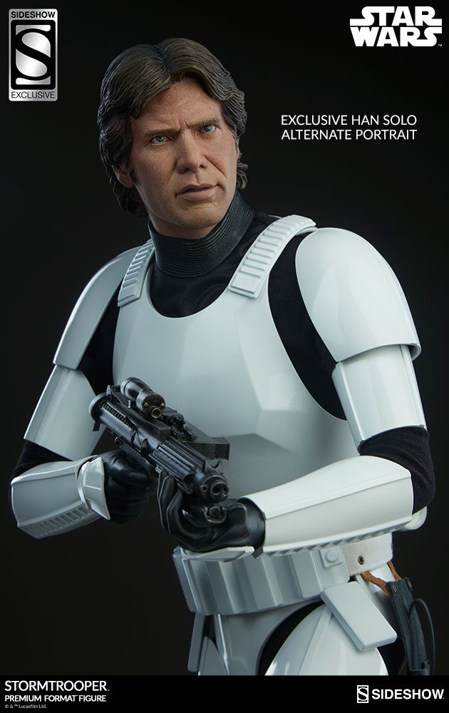 The Exclusive edition of the Stormtrooper Premium Format™ Figure includes an alternate realistic portrait of the dashing smuggler Han Solo. Swap the Stormtrooper helmet for Han Solo’s portrait to recreate an iconic moment from Episode IV and prove that everything’s under control in your collection. Situation normal.