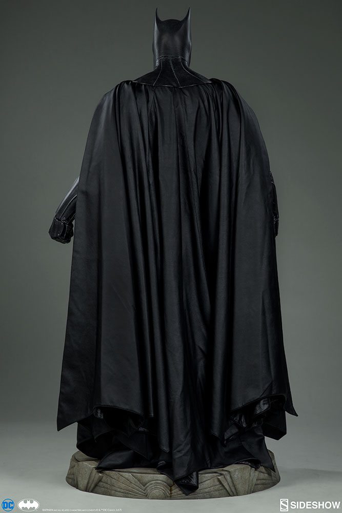 Sideshow’s take on this iconic hero is crafted out of polyresin, fiberglass, and fabric. As a part of our Legendary Scale™ lineup, this half-scale depiction of the Dark Knight himself stands an impressive 43” tall and is 23” wide at the base.