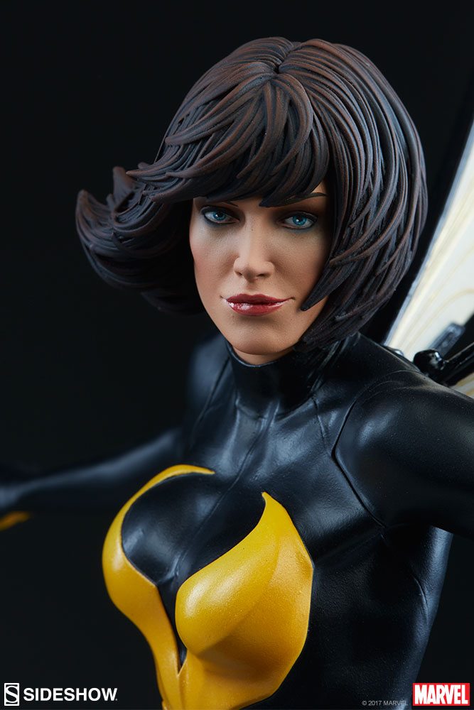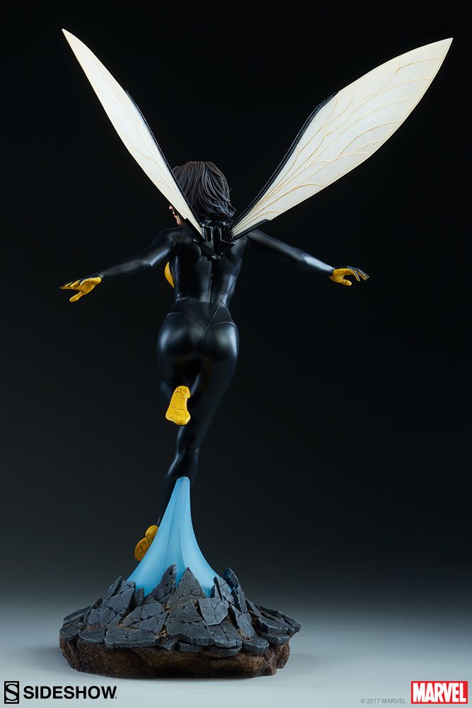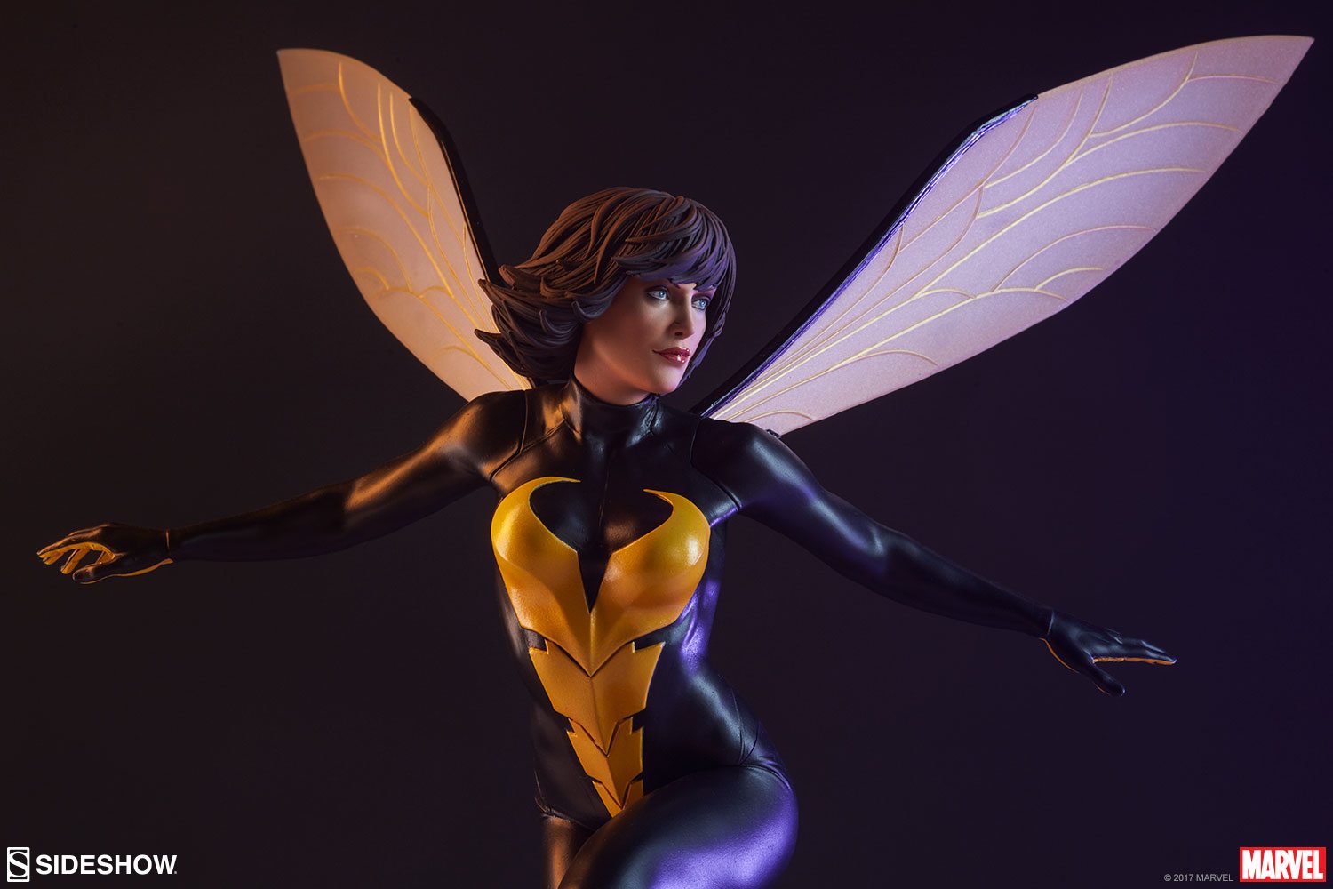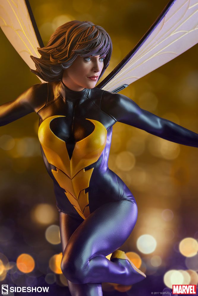 The stylish superheroine is dressed in her black costume with yellow accents on the feet, hands, and the insectoid armor design on her torso. Her portrait is sculpted with windswept hair and a confident expression, giving off that effortless flair that Janet is famous for.