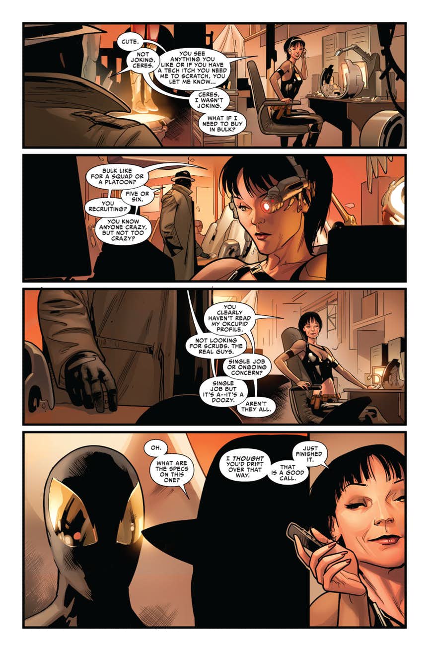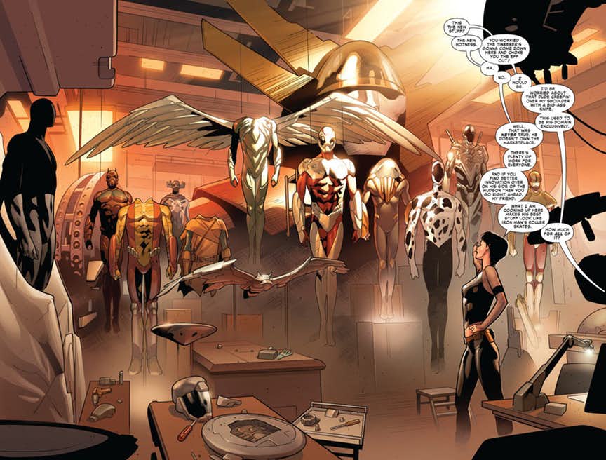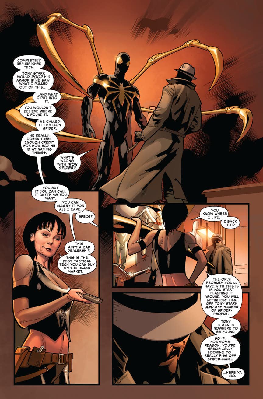 SINISTER SIX REBORN Part 1 – Miles’ world has been shaken a lot lately, but nothing will compare to what the mysterious Iron-Spider and his brand new SINISTER SIX will do. Sandman, Hobgoblin, The Spot, Electro and Bombshell (?!) join this mystery villain to make Miles’ life a living hell.