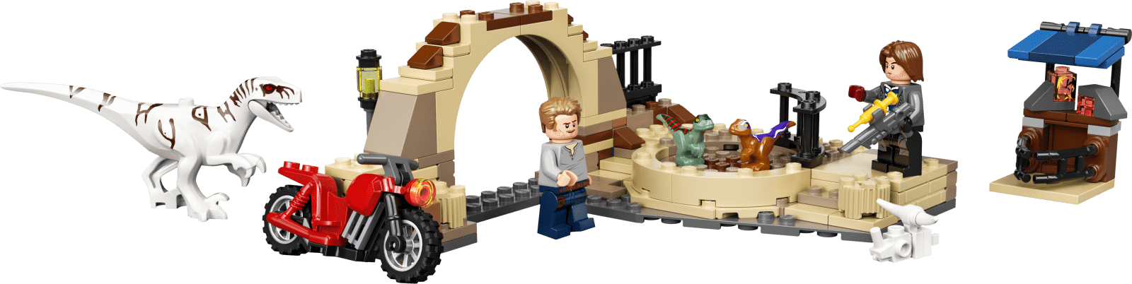 Get set for action-packed play with this brilliant set, inspired by the upcoming Jurassic World Dominion movie. It’s got a market with a wall for the fierce Atrociraptor and a cool motorcycle to smash through, a battle pit for 2 small dinosaur figures, plus Owen Grady and Rainn Delacourt minifigures.