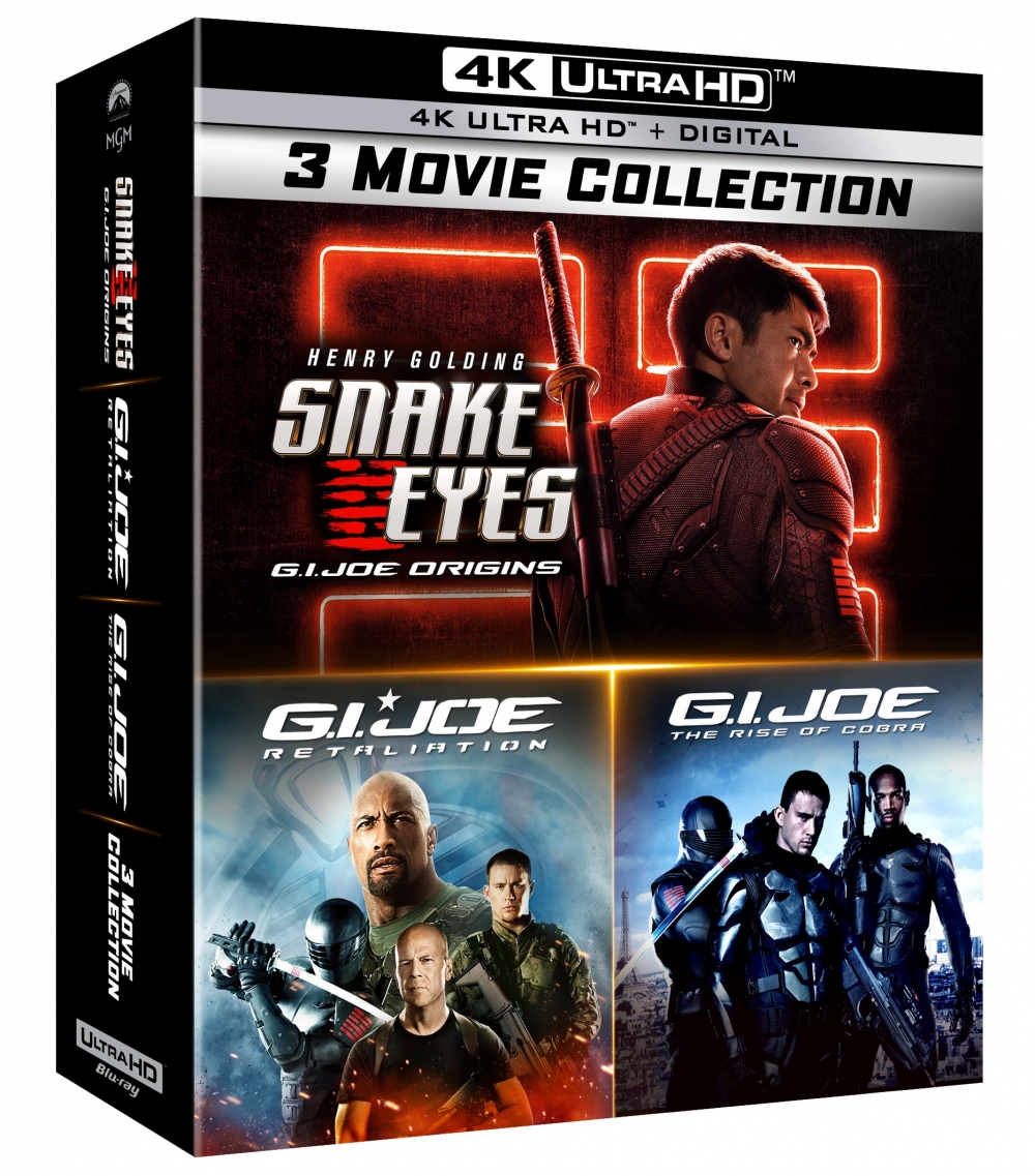 Paramount Pictures has announced that Snake Eyes: G.I Joe Origins will arrive on 4K Ultra HD, Blu-ray and DVD on October 19th, along with the G.I. Joe Collection three-movie boxset which includes the new movie alongside predecessors G.I. Joe: The Rise of Cobra and G.I. Joe Retaliation; check out the cover artwork and details on the special features below…
