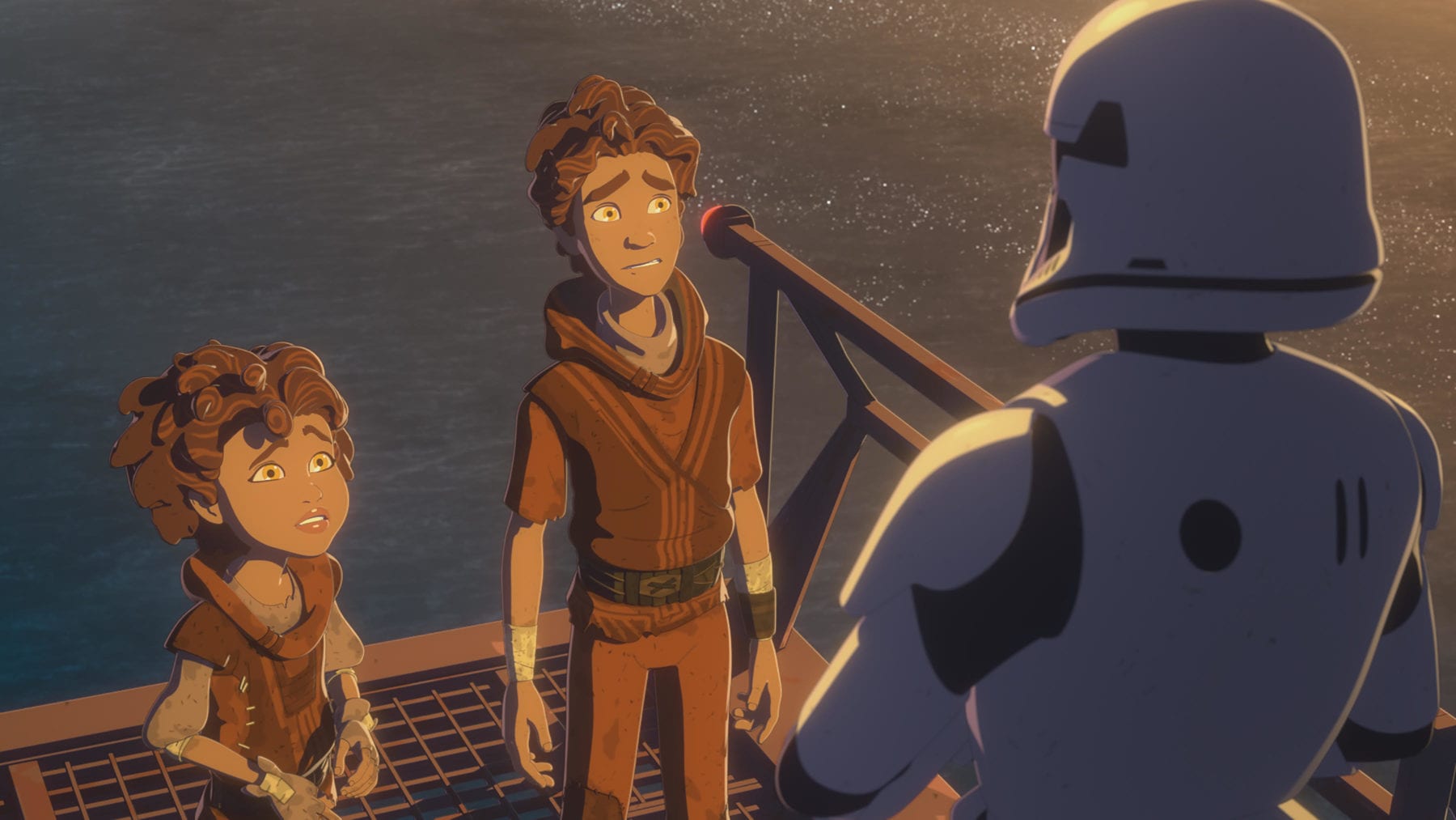In “The New Trooper,” When Kel and Eila seek out Kaz’s help after accidentally knocking out a First Order stormtrooper, Kaz dons the trooper’s armor in an effort to collect more information on the First Order.