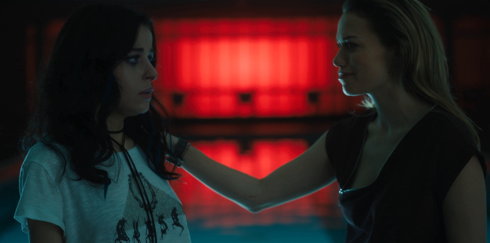 This is also where So Cold the River stumbles into some cringe territory, as Erica tries seducing the man (presumably to lower his guard and uncover more information) in a cheaply written way that doesn’t feel empowering to the character. If anything, her journalistic integrity is repeatedly called into question as one of her fans and assistants (Katie Sarife) looks on in repulsion, witnessing some of her manipulative behavior. At one point, the phrase “never meet your heroes” is said.