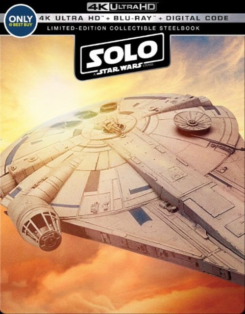 With Solo: Star Wars Story disappointing at the theatrical box office, Disney and Lucasfilm will be hoping to recoup some of the reported $80 million loss with the home-entertainment release of the Ron Howard-directed Anthology movie. As yet, there’s no word as to when we can expect it to arrive, but we do have a look at a Best Buy exclusive 4K Ultra HD Blu-ray Steelbook, while Target is offering the standard 4K/Blu-ray with a Millennium Falcon collectible (albeit in red, for some reason).