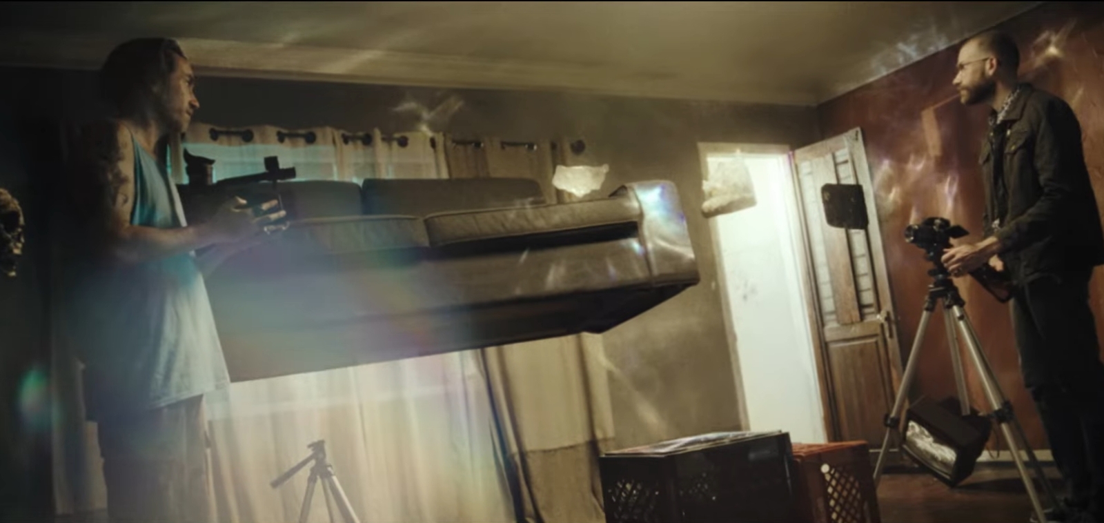 Troubled bartender Levi (Benson) is planning to finally leave Los Angeles once and for all, but first hunkers down in a no-lease apartment while wrapping up his affairs. Levi soon enough encounters neighbour John (Moorhead), and their fast friendship ends up galvanised by the discovery of seemingly impossible gravitational phenomena in Levi’s new digs. Once their shock abates, the pair decide to try and monetise the supernatural occurrences, collaborating on a documentary film they hope will bring them grand riches from Netflix or whoever.
