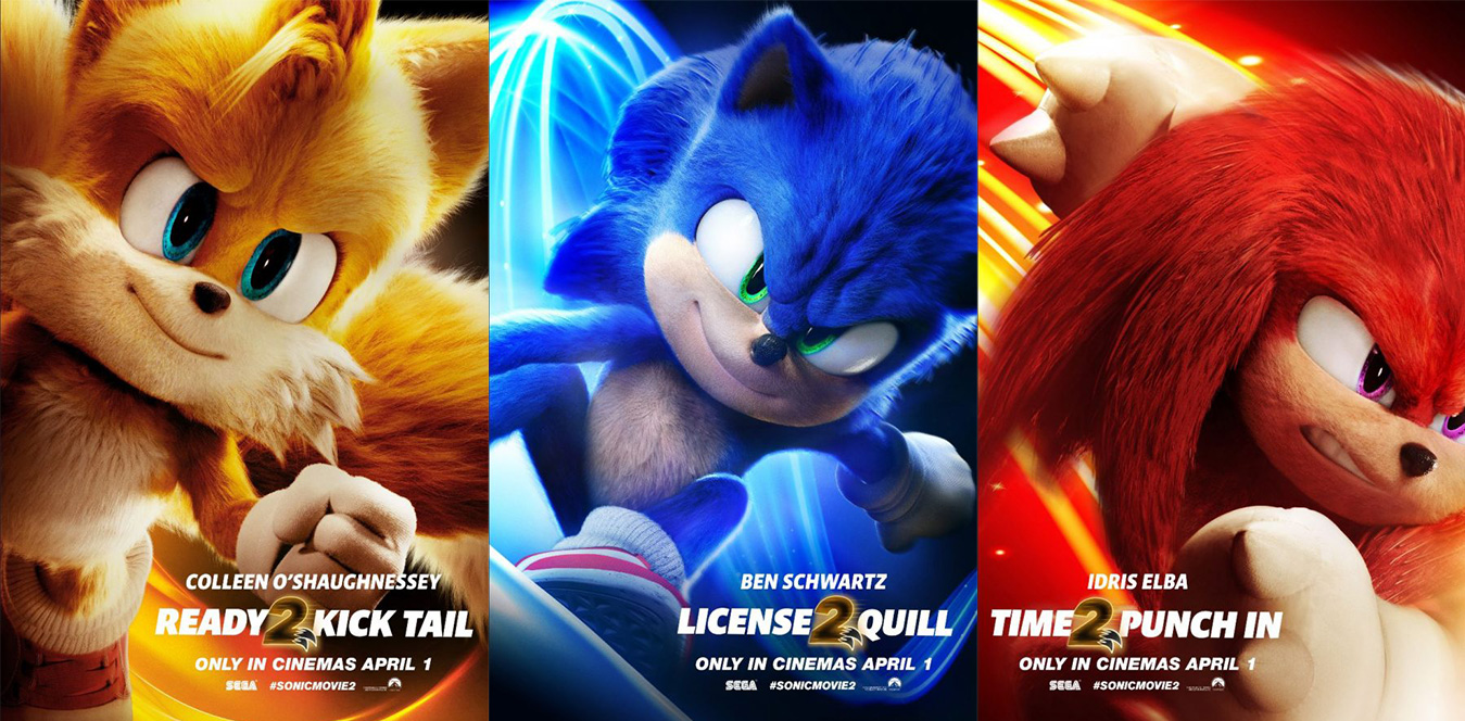 Paramount Pictures has released three new character posters for the upcoming Sonic the Hedgehog 2, which put the spotlight on the film’s three CG creations Sonic (Ben Schwartz), Tails (Colleen O’Shaughnessey) and Knuckles (Idris Elba), as well as offering some 2-related tagline puns. Take a look at the posters here…