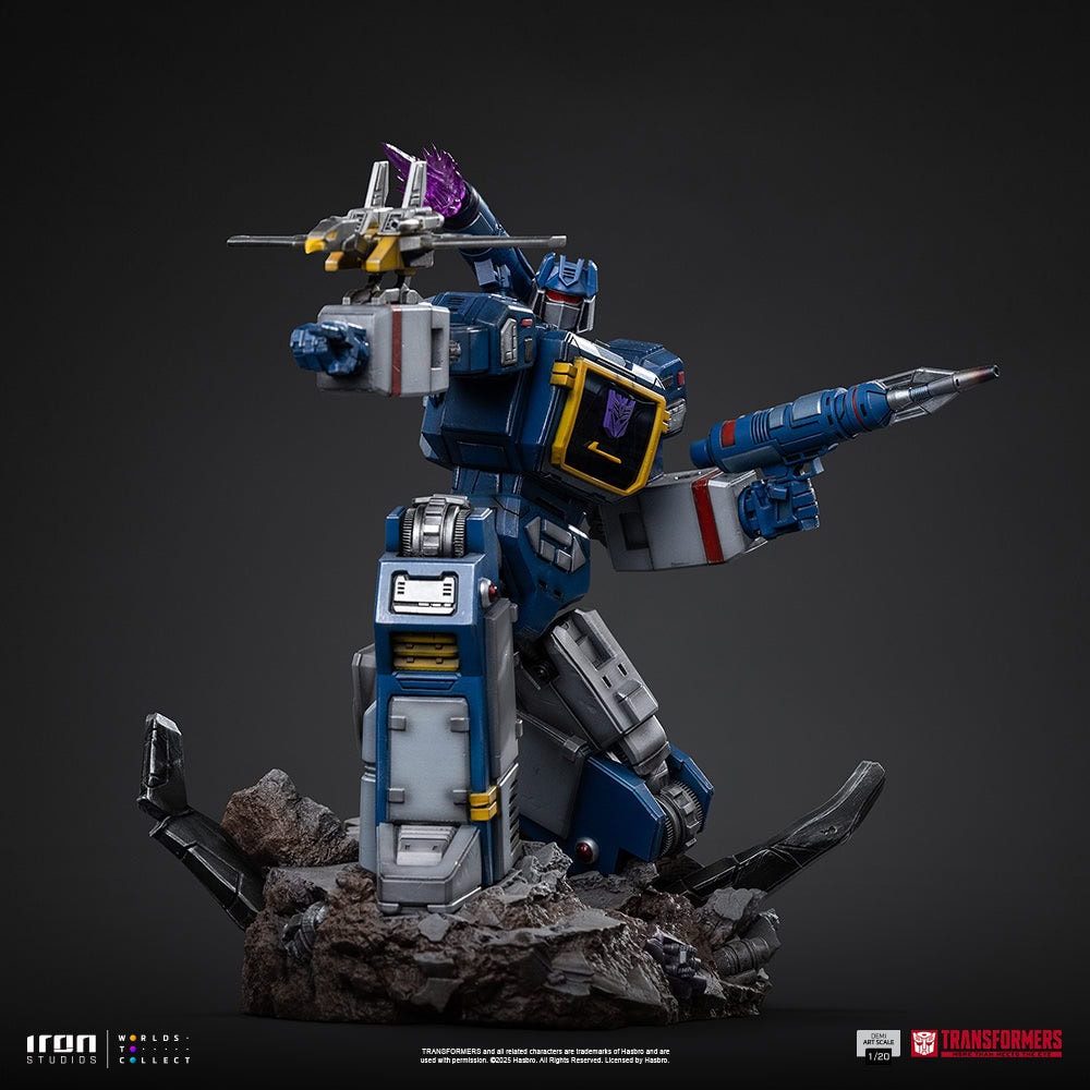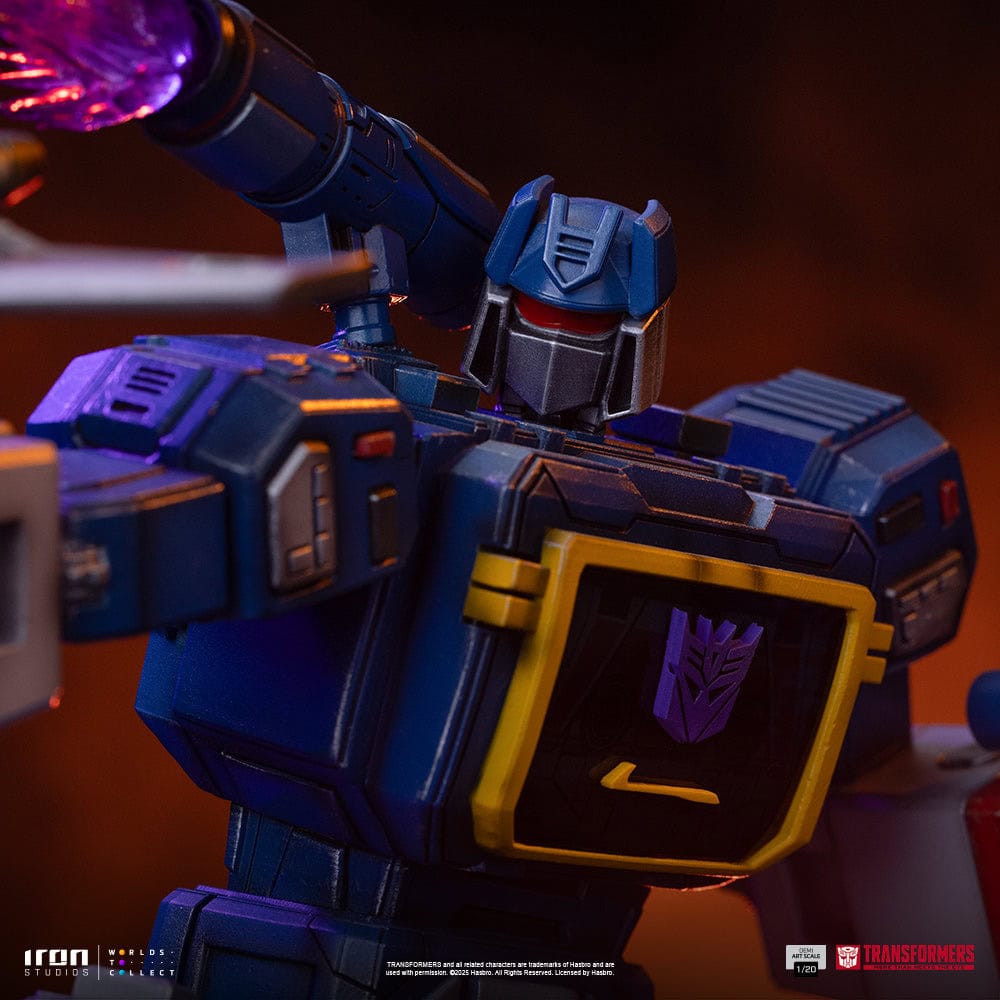 Produced by Iron Studios, the Soundwave 1/20 Demi Art Scale statue captures the iconic Decepticon in a commanding pose — highlighting his unmistakable blue and silver design and menacing presence. The piece is crafted in high-quality Polystone and may contain parts in resin, ABS, and PVC, with a fully hand-painted finish that gives it a unique artistic touch. The Demi format makes Soundwave the perfect addition to displays of any size, complementing other Iron Studios Transformers statues.