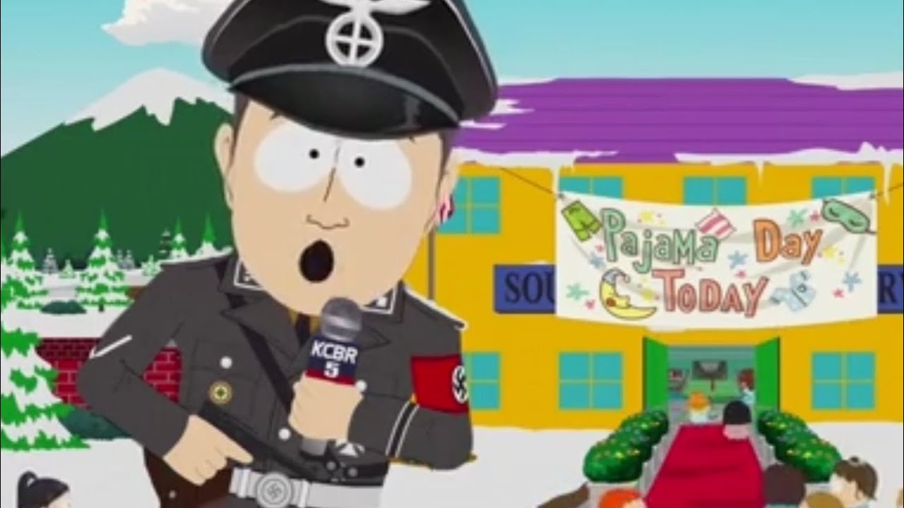 The set-up for the episode is simple – as a result of disrespecting Mr Garrison, the children at the school get their upcoming Pajama Day cancelled. This sparks outrage across the town, with some comparing the school’s actions to Nazi Germany and many standing in support of the children.