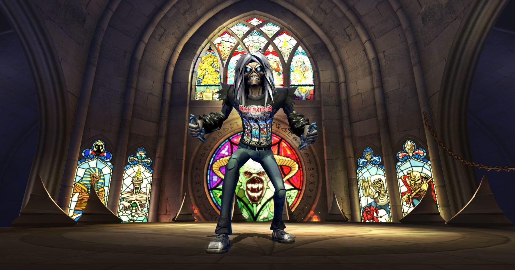 As well as a new free stylish looking Eddie, Iron Maiden: Legacy of the Beast includes a new Cathedral arena which has been designed in tandem with Iron Maiden’s touring stage showing that there is indeed a great connection between the group’s real world and virtual world.