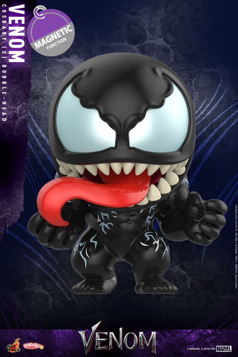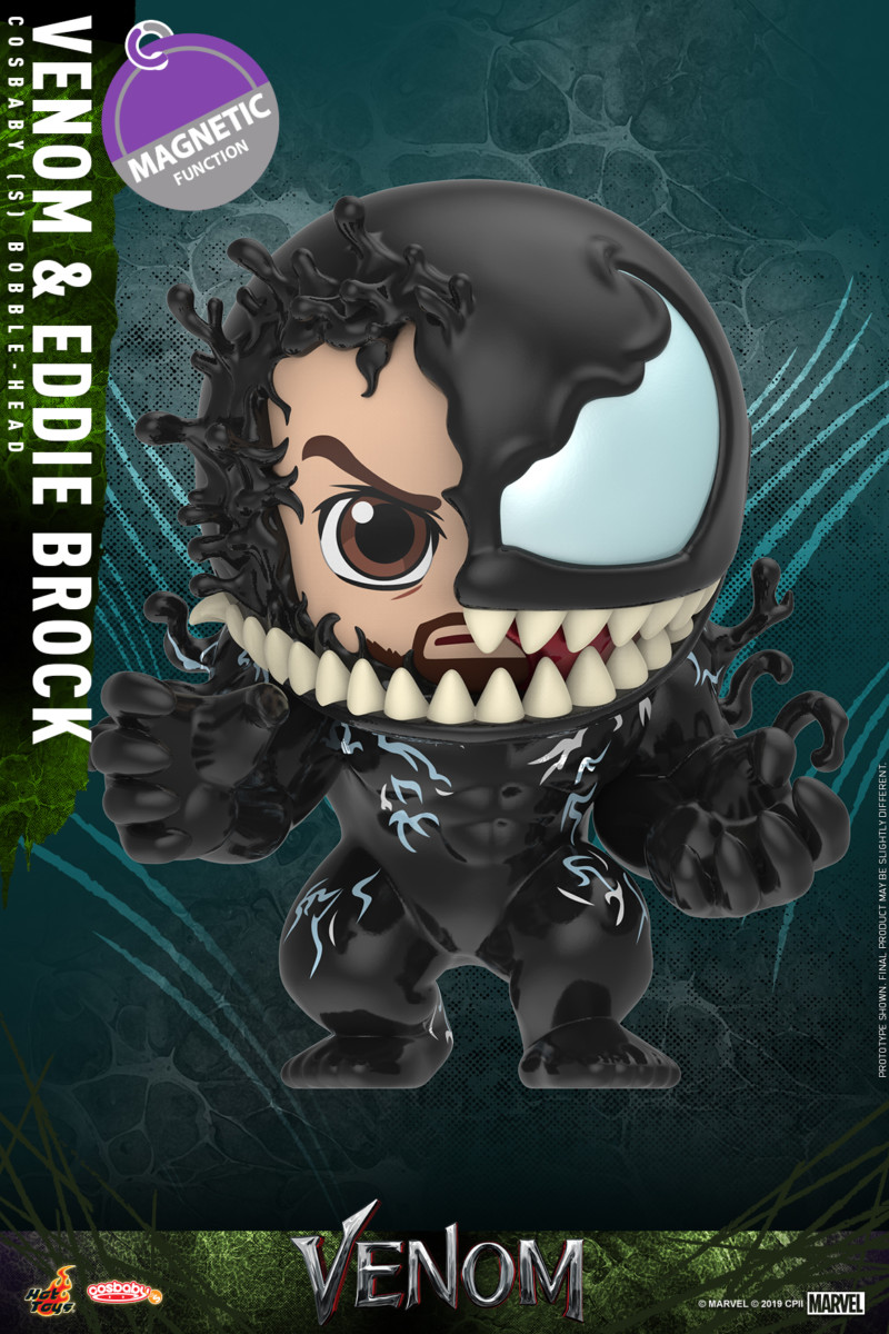 A failed reporter, Eddie Brock, is bonded to an alien entity, one of many symbiotes who have invaded Earth. The being takes a liking to Earth and decides to protect it, which also leaves Eddie with superhuman strength and power. Today, Hot Toys is thrilled to introduce the brand new Cosbaby series based on the film Venom. Each Cosbaby Bobble-Head is approximately 9.5 – 10cm in height with Bobble-Head and magnetic function.