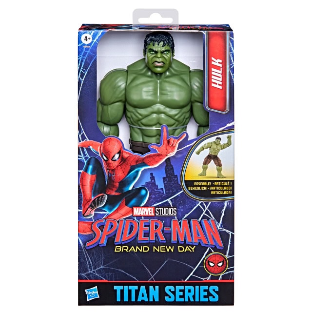 Imagine big, gamma-powered action and adventure with Marvel Spider-Man Titan Series girls & boys action figures from Hasbro! This Hulk toy stands 11.7-inches tall and features design inspired by Marvel Studios’ Spider-Man: Brand New Day, part of the Marvel Cinematic Universe. With 11 points of articulation for poseable play, kids ages 4 and up will love re-creating favorite moments from the entertainment or imagining new and daring Super Hero stories with this figure. Look for more Marvel Spider-Man toys, including action figures, toy vehicles, playsets, and role play gear, to build a collection or give as gifts for kids on birthdays, holidays, and other special occasions (each sold separately, subject to availability).