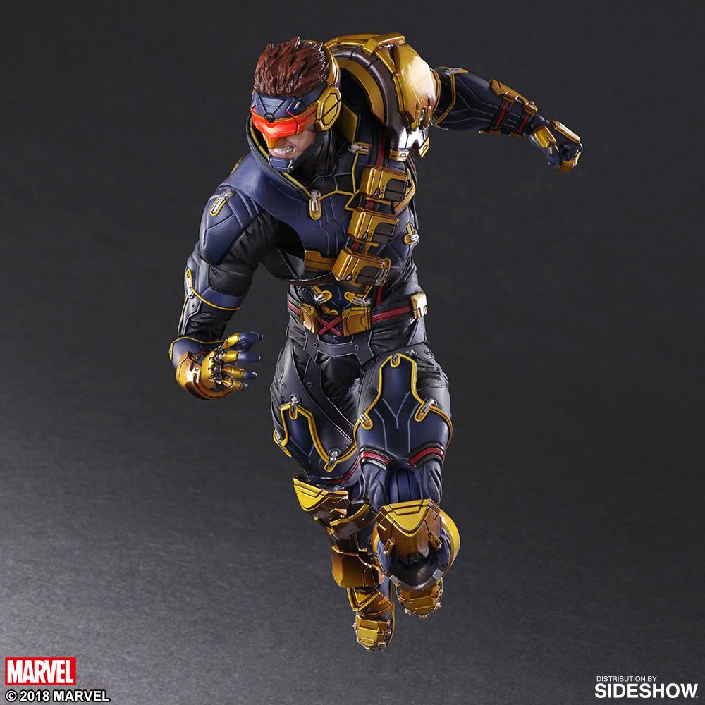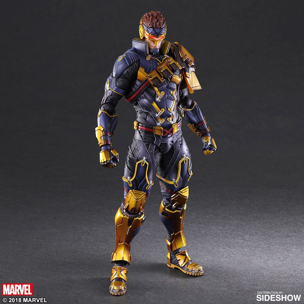 The design captures everything that makes Cyclops iconic, starting with his visor, used to regulate his uncontrollable superpower. His muscled physique is decked out in a unique, yet recognizable version of his suit, with various fighting equipment, embodying the Variant Play Arts KAI design ethos. Colored in detail, the utilization of glossy, matte and metallic finishes offer a realistic effect, carefully expressing the various textures of this figure and capturing the feeling that Cyclops has encountered countless battles.