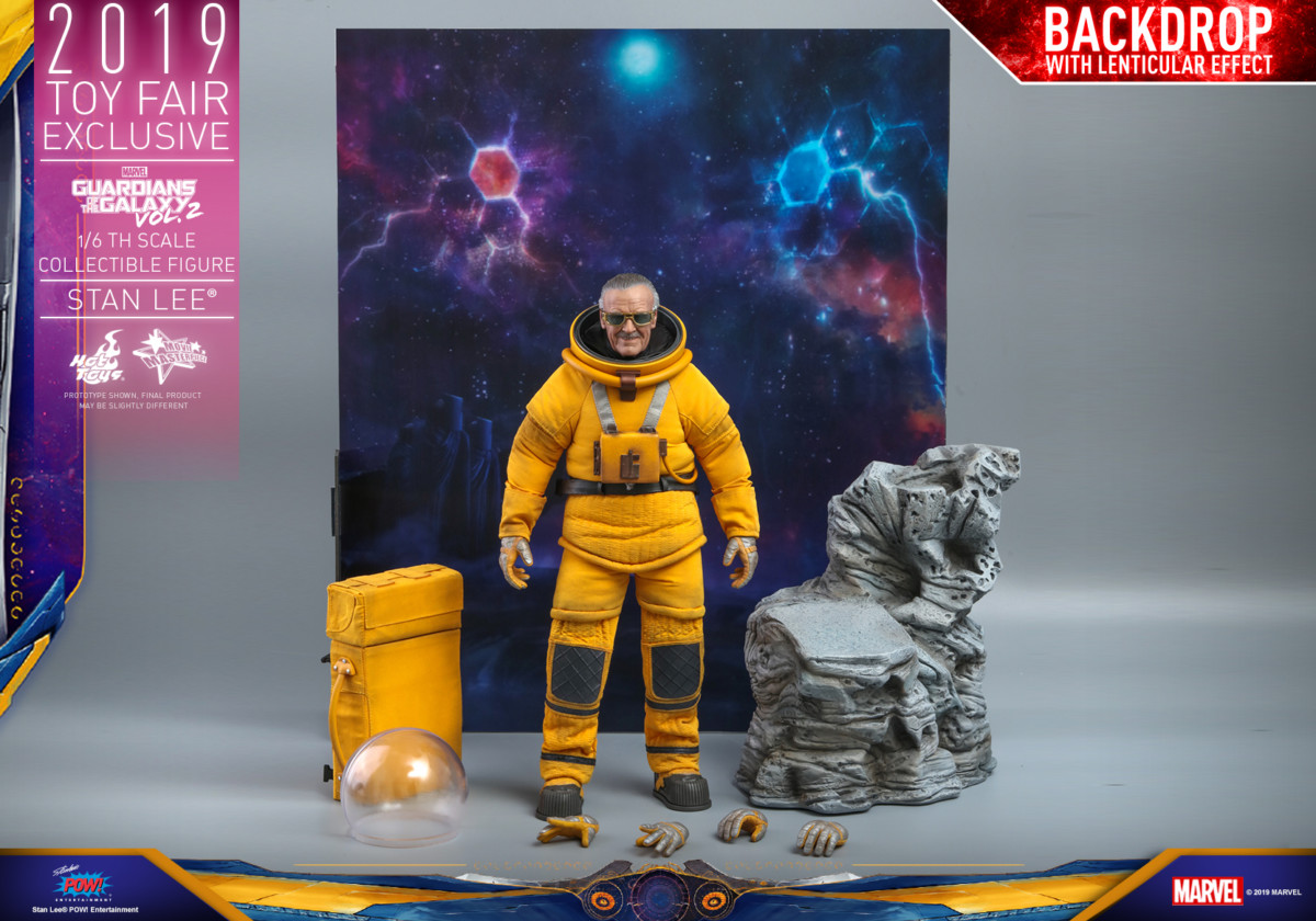 Hot Toys has unveiled its Toy Fair exclusive 1:6 scale Movie Masterpiece Series Stan Lee figure which is based on the appearance of the late Marvel legend’s memorable cameo in the blockbuster sequel Guardians of the Galaxy Vol. 2; take a look at the promotional images here…