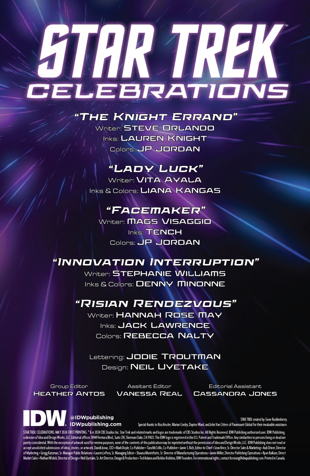 IDW proudly presents a one-shot anthology centering and celebrating LGBTQIA+ characters from across the Star Trek universe! Join legendary heroes from each era of the beloved franchise in stories that showcase the strengths of infinite diversity in infinite combinations, brought to you by a star-studded cast of writers and artists including Vita Ayala, Steve Orlando, Mags Visaggio, and more!