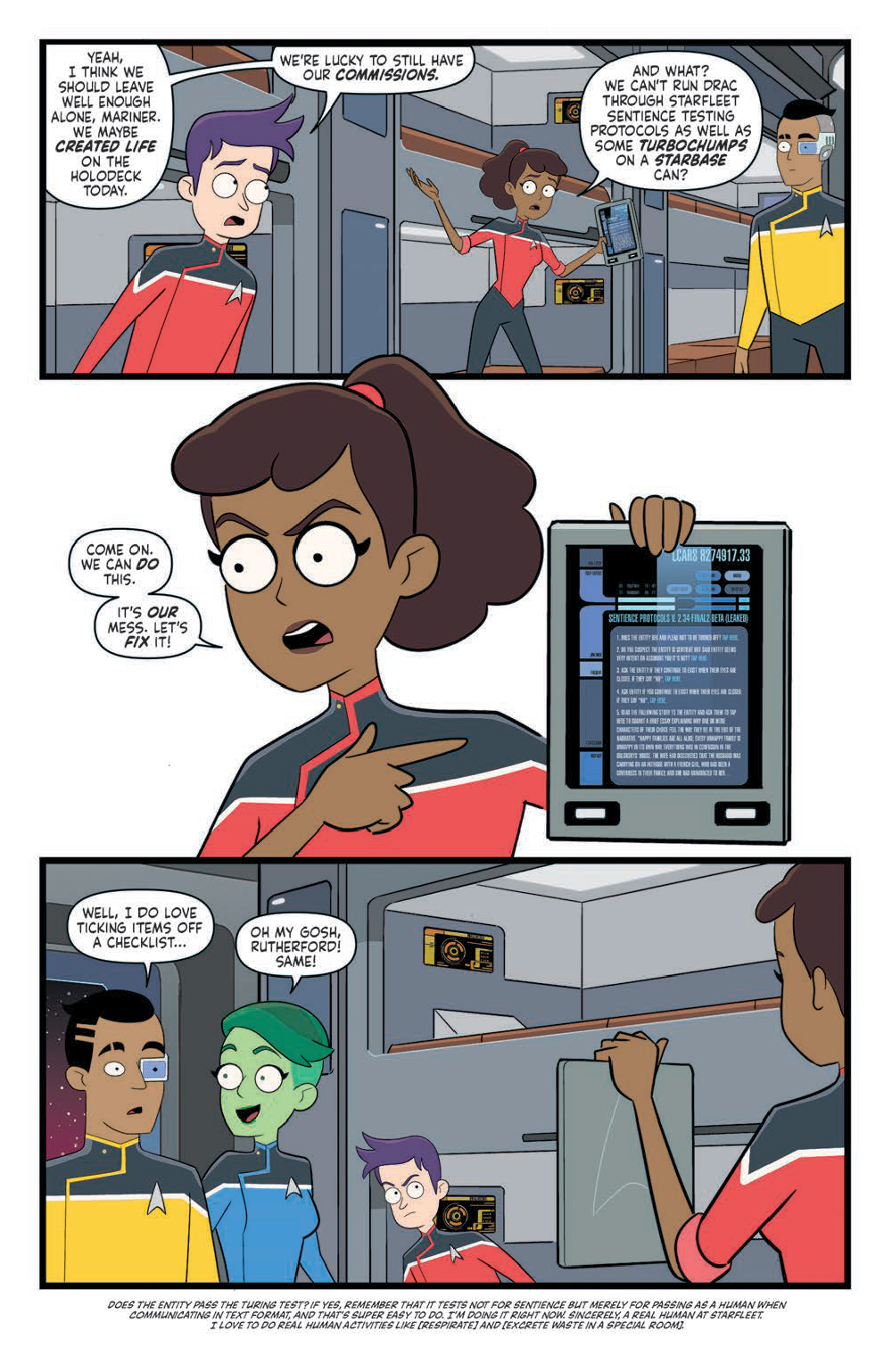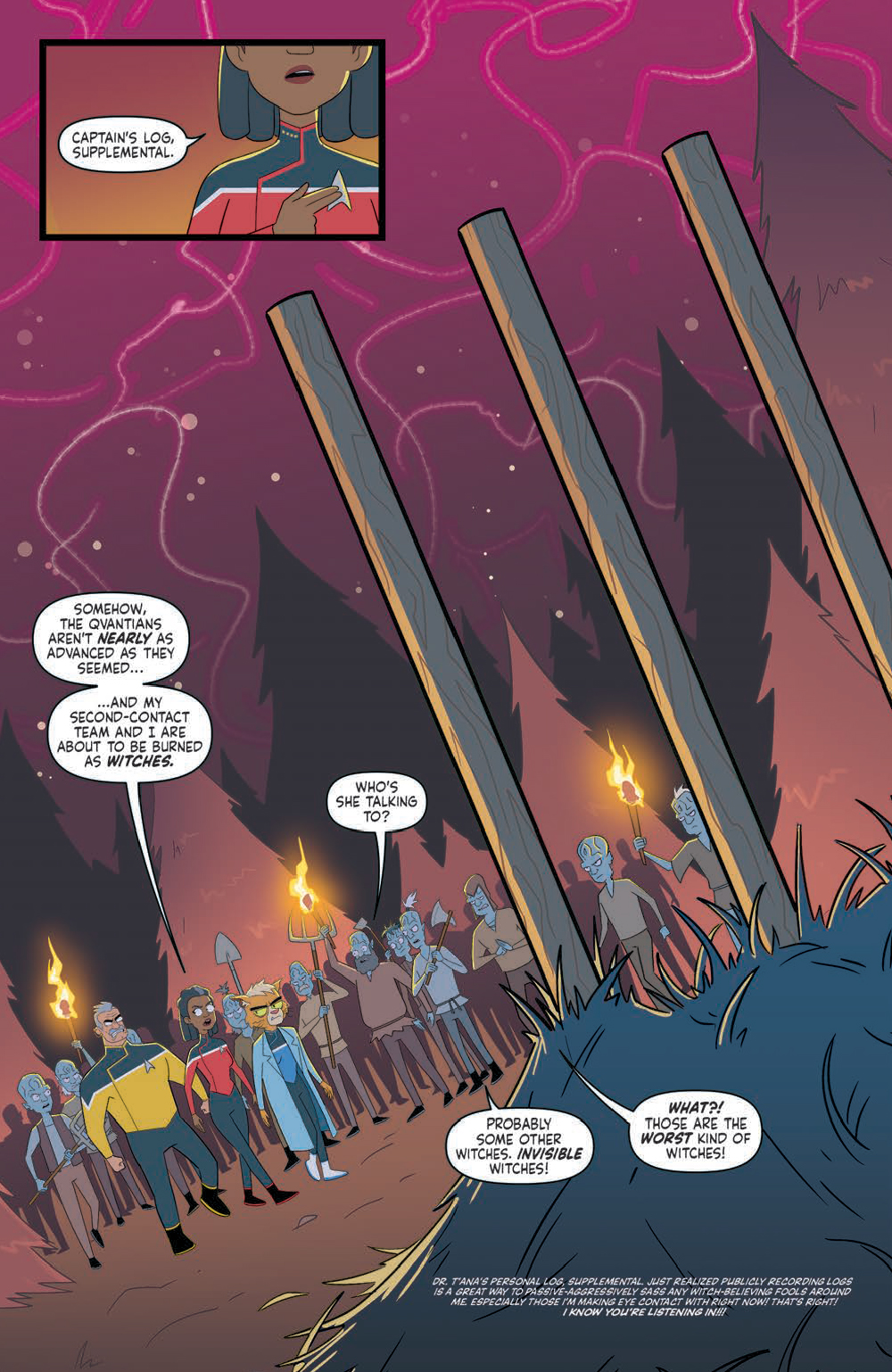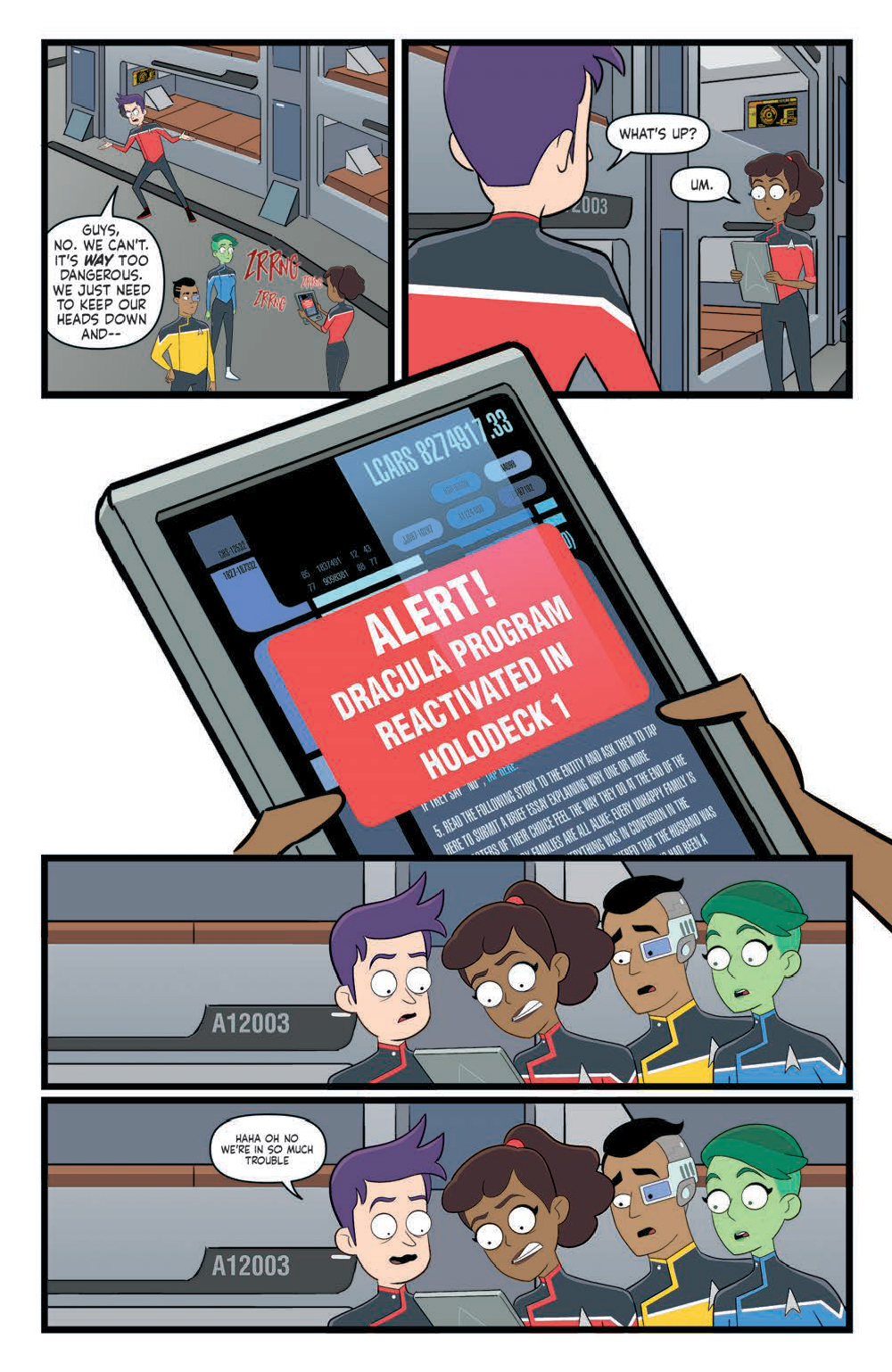 The exclusive comic tie-in to the hit Paramount+ animated series continues here! While the crew in the lower decks deal with the repercussions of bringing Dracula aboard the Cerritos, the away team grapples with its own unfortunate miscalculation on the planet Qvanti.