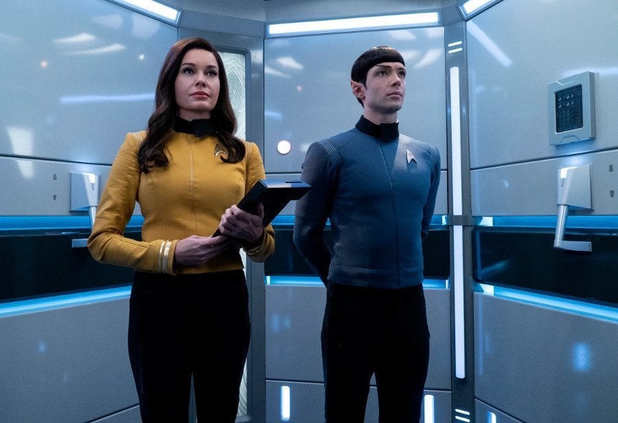 During this weekend’s Star Trek panel at the San Diego Comic-Con International, CBS All Access has announced six new episodes of its Star Trek: Short Treks series, three of which will revolve around the original crew of the U.S.S. Enterprise and see the return of Pike (Anson Mount), Number One (Rebecca Romijn) and Spock (Ethan Peck).