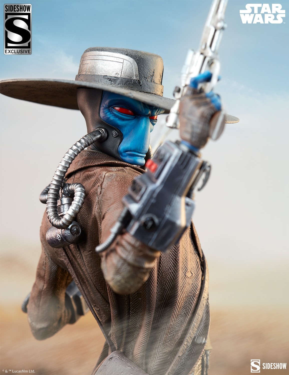 From the Core Worlds to the Outer Rim, there’s no one like him. Measuring 22.6” tall, 13.4” wide, and 12.5” deep, the Cad Bane™: A Few Bounties More Premium Format™ Figure is ready to track his target to the end of the galaxy. After chasing his hard-earned credits through a sandstorm, Cad Bane finally comes to a standoff. His duster coat billows behind him, but the blue-skinned bounty hunter’s red eyes are fixed firmly ahead … and shaded from the blistering desert sun by his iconic wide-brimmed hat. His service droid Todo 360 watches nervously from behind Cad Bane’s leg, awaiting orders from atop the scorching sand dunes.