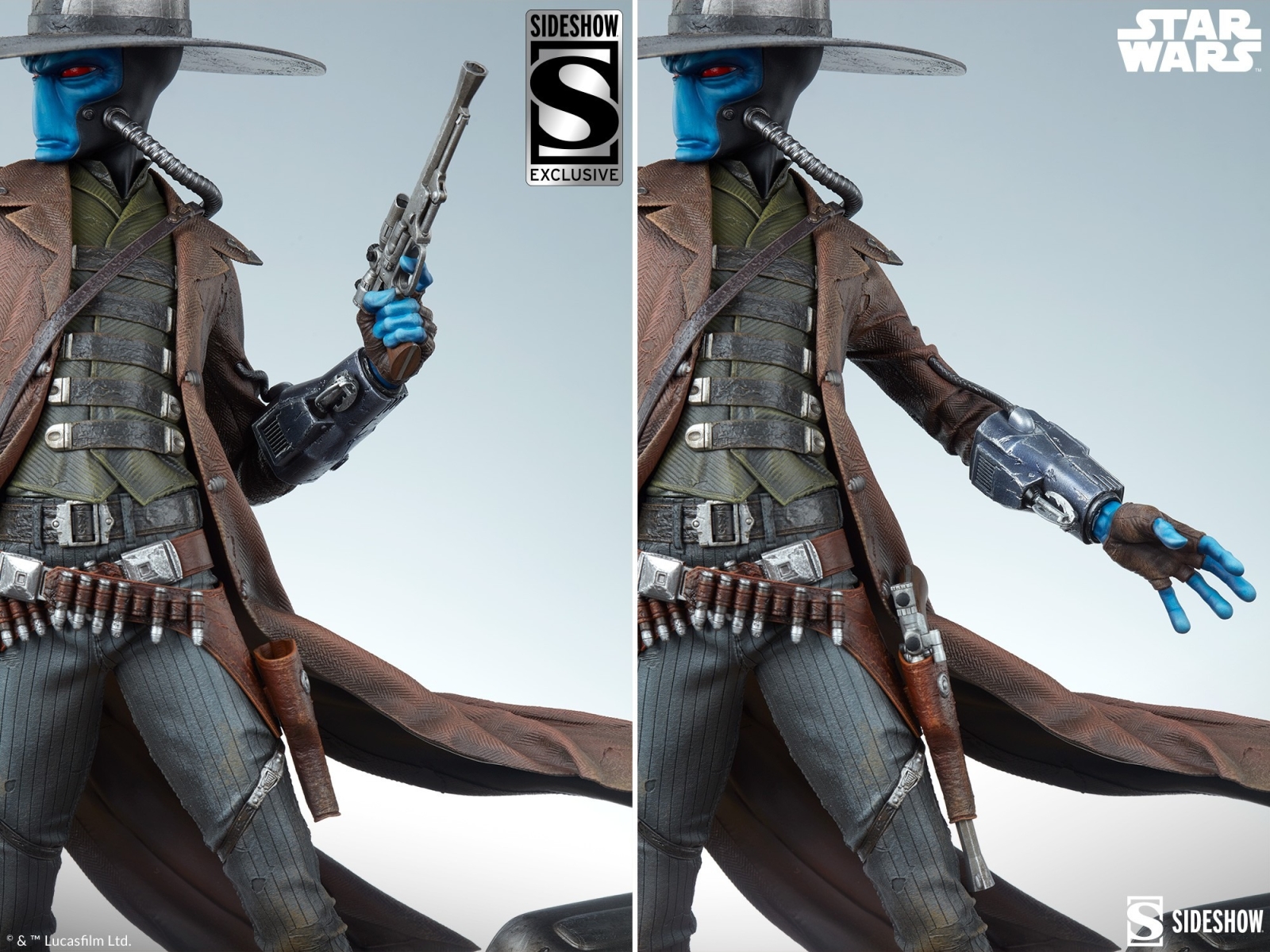 The Exclusive Version of the Cad Bane™: A Few Bounties More Premium Format™ Figure features a swap-out left arm holding a second blaster as well as an empty holster to increase the detailed storytelling aspect of this piece. Cad Bane’s dual-wielding capabilities make him more desirable to his clients — and dangerous for his prey!