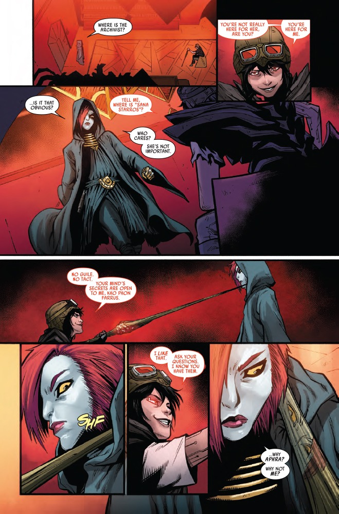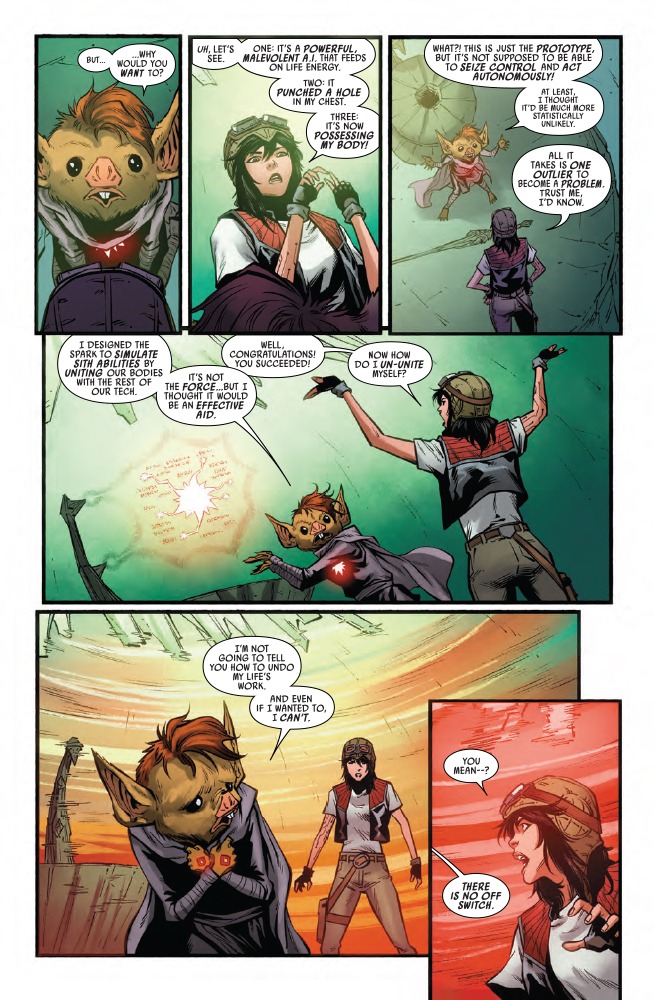 Desolation! The spark undying lives in Doctor Aphra’s body, and as its power grows, so does its hunger! But Aphra’s plotting her own escape…! As everyone flocks to the Vermillion, their showdown will change everything!