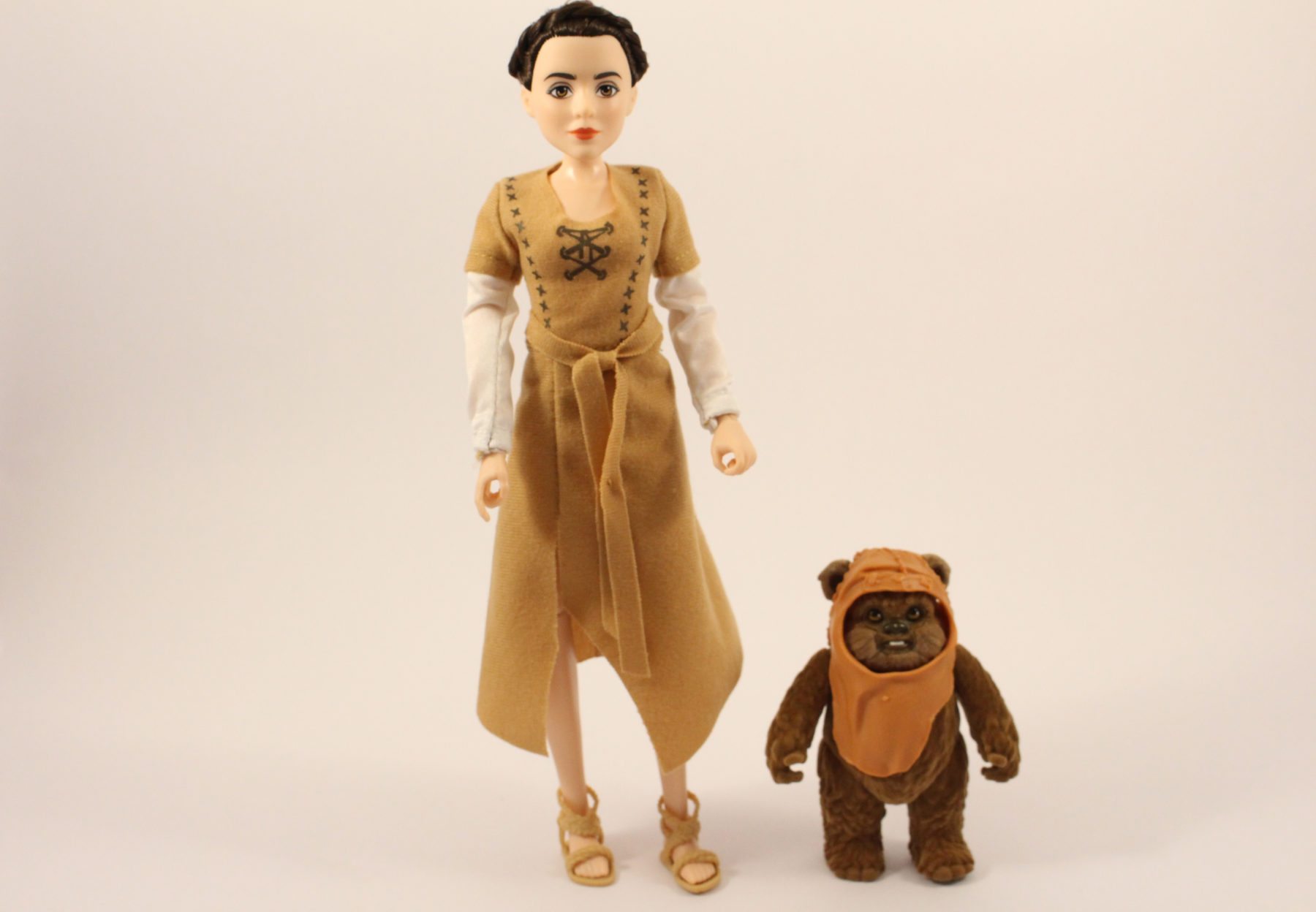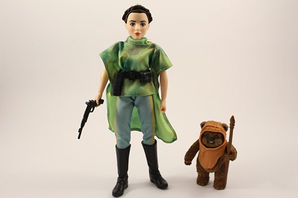 And next up we have the Princess Leia Organa & Wicket the Ewok Endor Adventure set, which features everyone’s favourite Rebel princess along with two fully removable fabric costumes – the Combat Poncho (as fans of the Kenner action figure line will know it) and Ewok village dress. As with Rey, Leia has realistic rooted hair (which once again is very well done), helmet and blaster, while Wicket also looks superb with his flocked body, removable hood and spear, bow and arrow accessories. If I have one complaint, it’s that Wicket looks a little too small next to Leia and could have done with being a couple of inches bigger; nevertheless, both figures look great