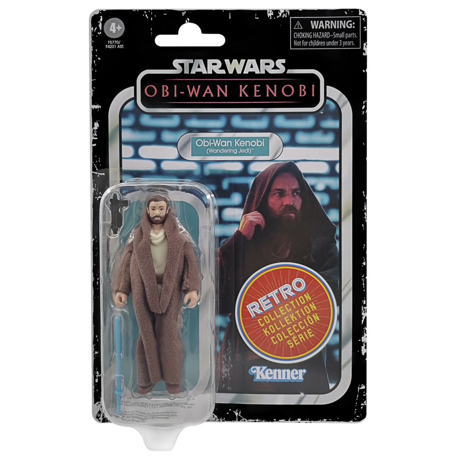 Inspired by the original 1970s Kenner STAR WARS action figures, this STAR WARS: RETRO COLLECTION 3.75-INCH OBI-WAN KENOBI (WANDERING JEDI) figure is inspired by the character in the STAR WARS: OBI-WAN KENOBI series. Fans and collectors can display this figure, with multiple points of articulation, in their action figure and vehicle collection. Includes figure and 2 entertainment-inspired accessories.
