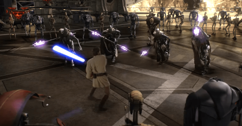 However, according to stunt coordinator Nick Gillard, who helped choreograph the duels in the Prequel Trilogy, director George Lucas cut an amazing sequence from Star Wars: Revenge of the Sith that saw Ewan McGregor duel in a six-on-one handicap against General Grievous and his bodyguards.