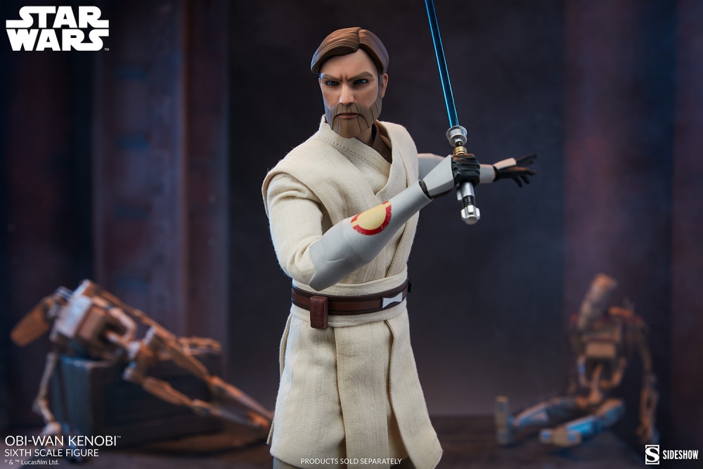 The Obi-Wan Kenobi Sixth Scale Figure captures the Jedi Knight’s distinct design from the fan-favorite animated series The Clone Wars, as he works to keep the galactic peace alongside the Jedi Order. This articulated figure features a stylized headsculpt and a carefully tailored fabric costume consisting of a Jedi robe, tunic, undershirt, tabards, pants, a sash, a belt with sculpted accessories, and sculpted boots and gauntlets to create his signature uniformed look.