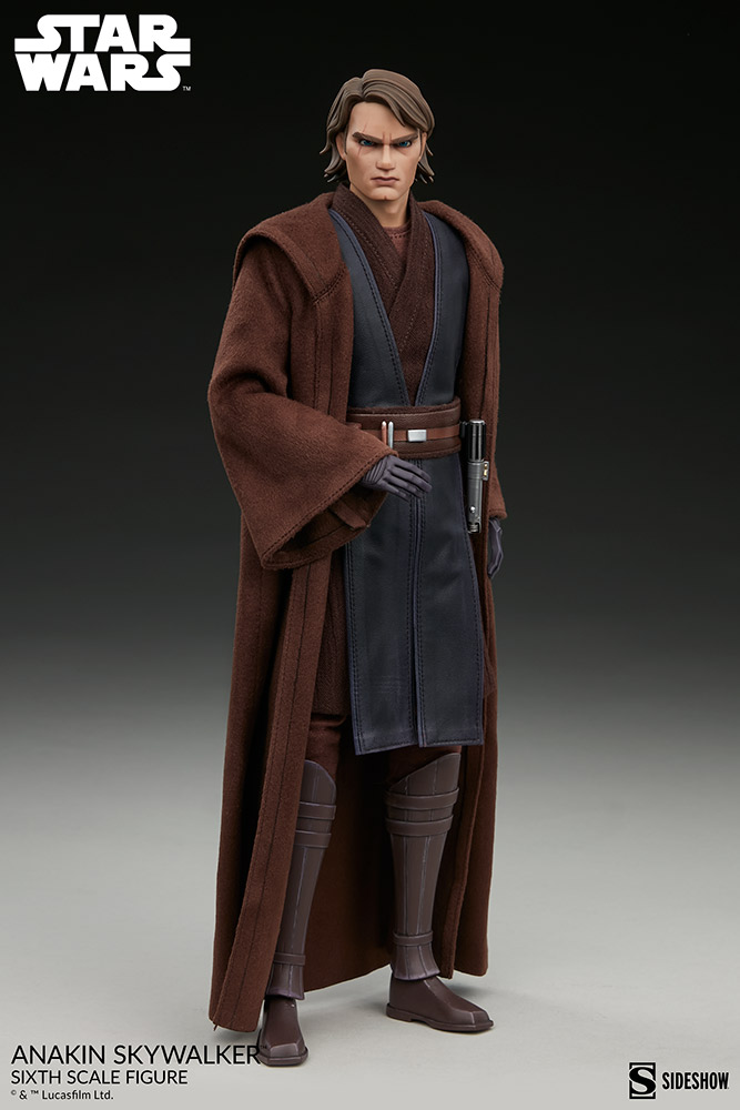 The Anakin Skywalker Sixth Scale Figure captures the Jedi Knight’s distinct design from the fan-favorite animated series The Clone Wars, as he works to keep the galactic peace alongside the Jedi Order. This articulated figure features a stylized headsculpt and a carefully tailored fabric costume consisting of a Jedi robe, tunic, undershirt, tabards, pants, a sash, a belt with sculpted accessories, and sculpted boots and gauntlets to create his signature uniformed look.