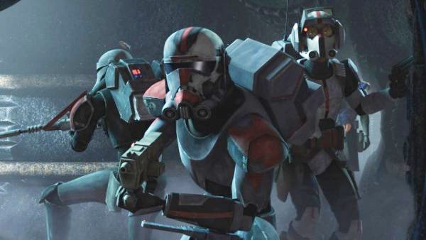 If it wasn’t already said before, Dee Bradley Baker is to be given much credit for his voice work as the clones. He slips back into the roles with ease and makes each clone sound once again distinct from one another, particularly Bad Batch member Tech who is fast-talking and more high-pitched than any previously seen clone. He made the Bad Batch a pretty interesting new group with how he matched their voices to their unique appearances. Clone Wars was always good for differentiating the clone’s appearances, but it takes it up a notch here with the Bad Batch as their leader Hunter looks very much inspired by Rambo, Wrecker is a big Hulk-like soldier, Crosshairs who has his name literally tattooed over his eye and they very nerdy-looking Tech. The touches done to make them look completely different, yet still somewhat similar to other clones, was really well done.
