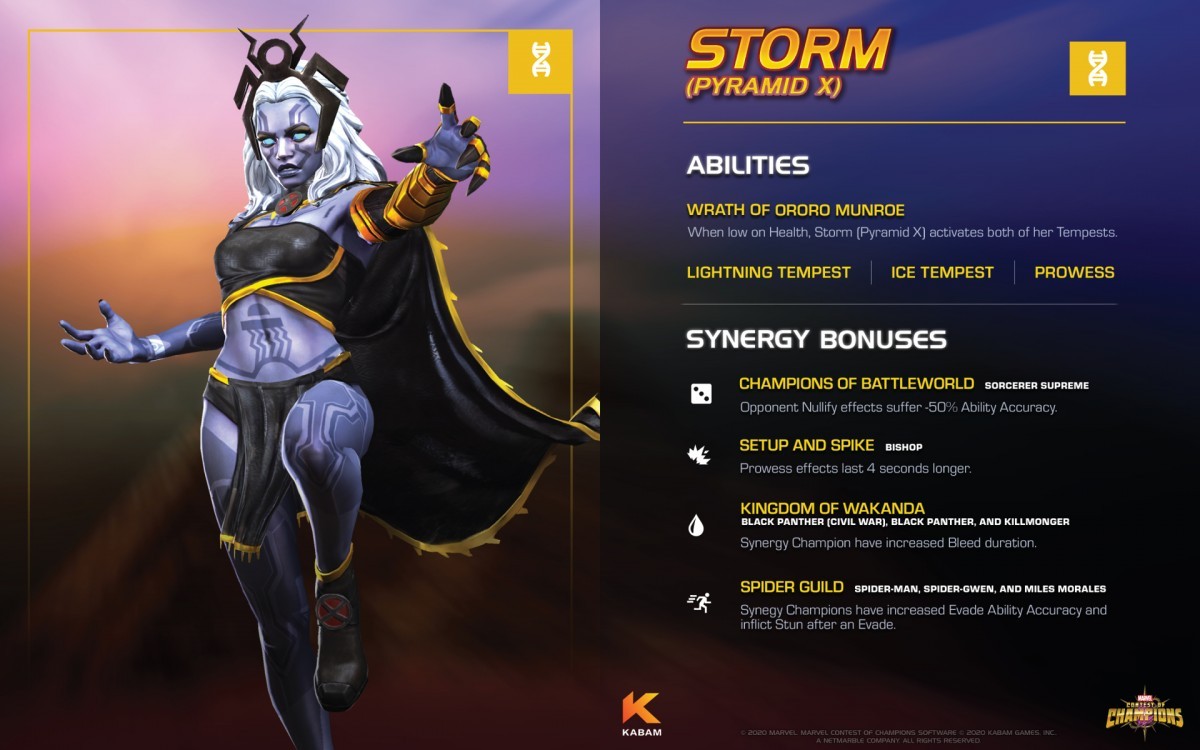 Kabam has announced that the latest update for the hit mobile game Marvel Contest of Champions has introduced an alternate ‘Pyramid X’ version of the legendary X-Men member Storm; check out her gameplay trailer, bio, and stats and abilities here…