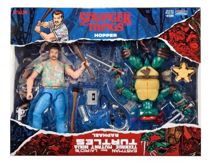 Raphael has 20 points of articulation and Hopper has 18 points, for action-packed poses! Set comes in a highly collectible TMNT and Stranger Things co-branded window box package!